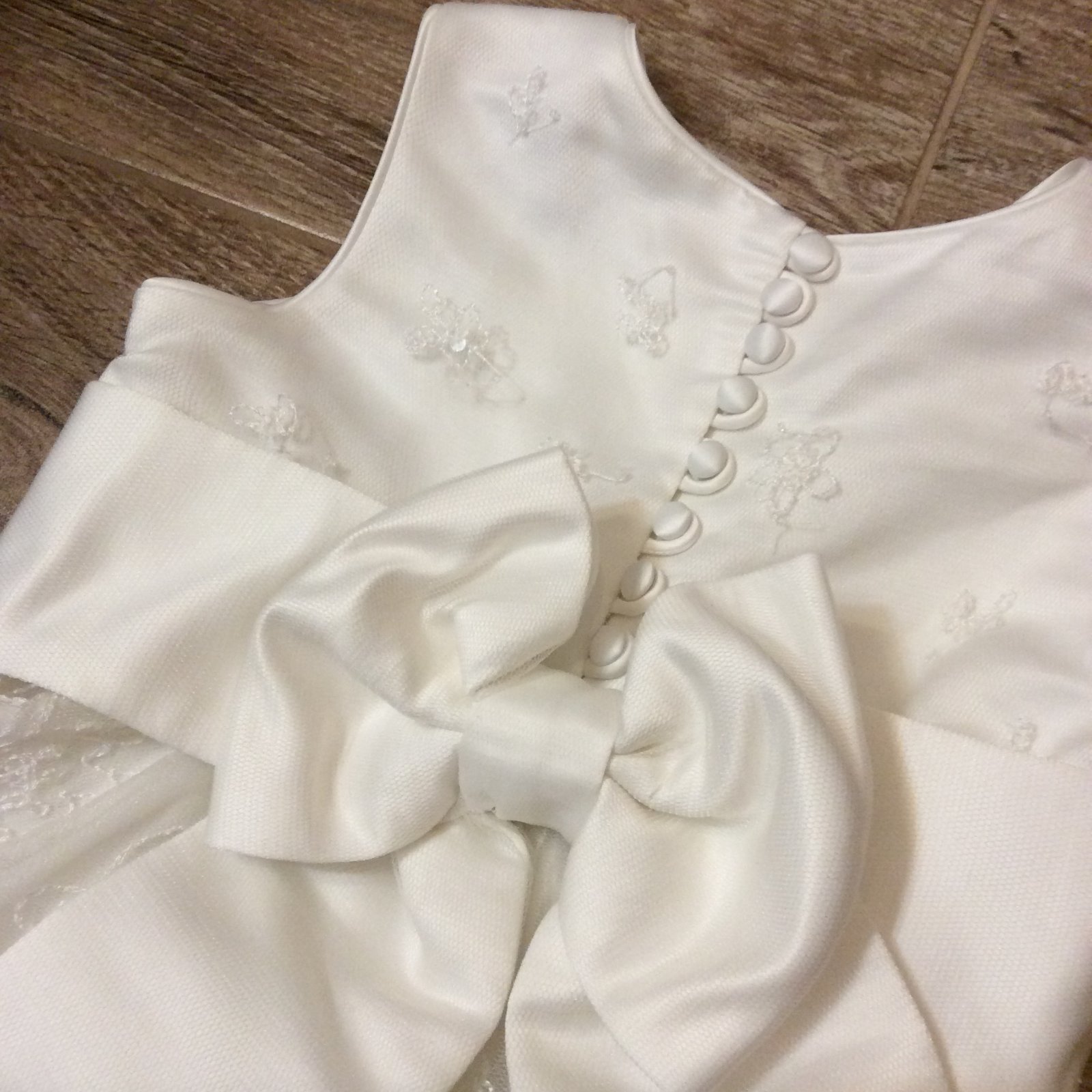 - luxusní nádherné slavnostní/svatební šaty - vzadu zapínání na knoflíčky + našitá nádherná mašle - na boční straně na zip - mají hodně bohatou sukýnku - mají 5 vrstev, působí hodně honosně - jsou zdobené vyšívanými květinkami, které jsou zdobené perličkami, barva: krémová, bílá