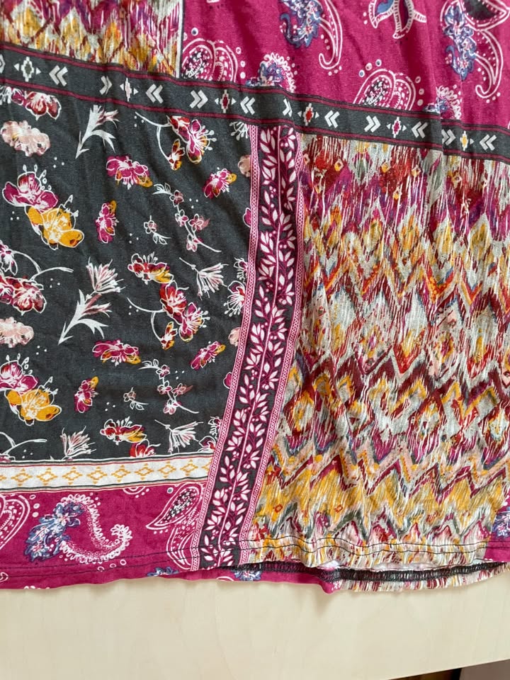 1113. nabízím k prodeji tyto barvené šaty s potiskem a korálky, vel M (volněji možno i méně), Jean Pascale. Šaty jsou nenošené (viz štítky) ale barvy jsou záměrně takové tlumené, zjemnělé chloupkem. materiál příjemný, hebký - 95% viscoza, + elasten. Nenošené, bez vad, krásné