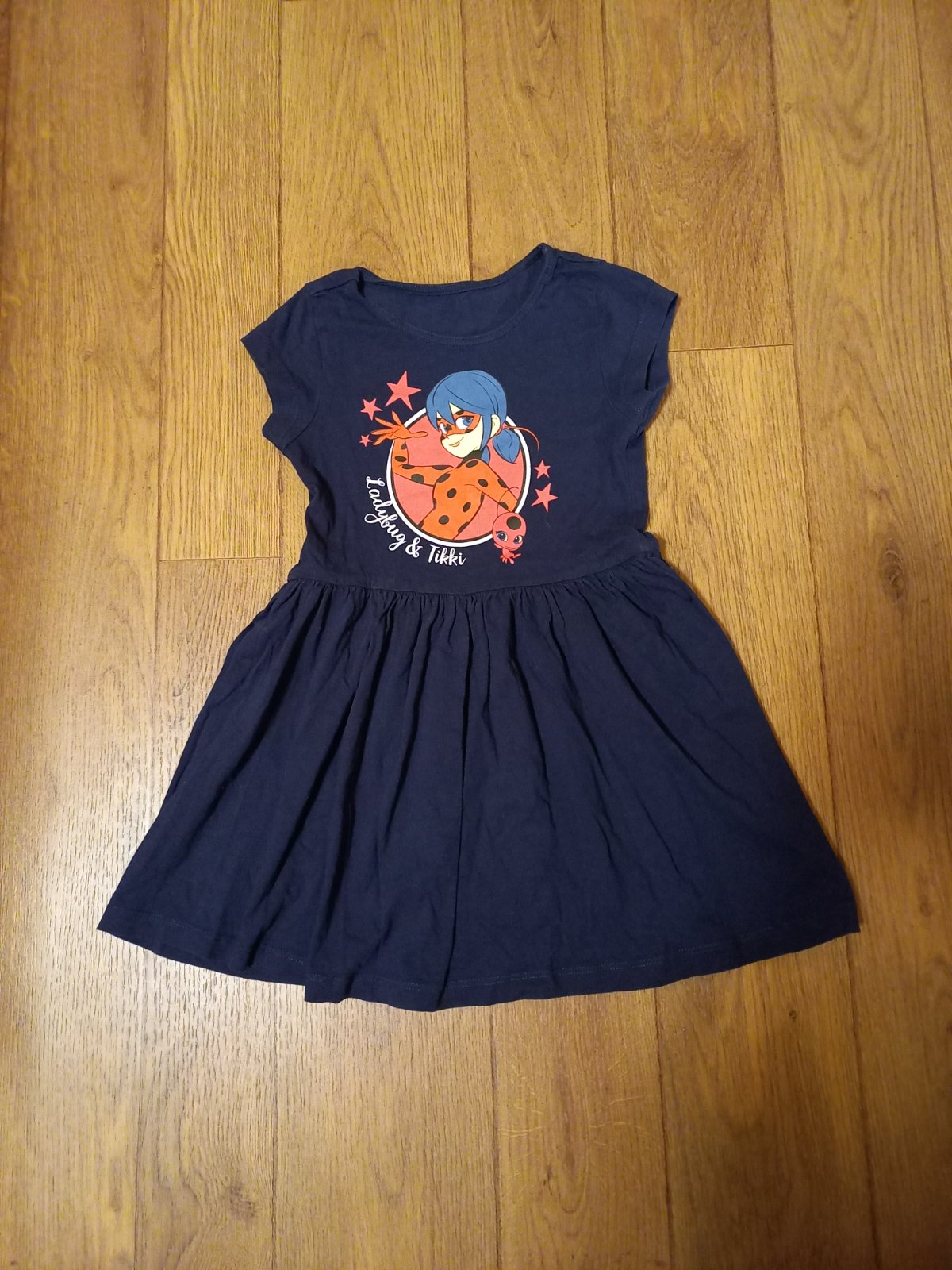 Pohodlné šaty s Beruškou. Velikost 92 odhaduji. Délka šatů 59 cm, šířka v podpaží 29 cm. Barva sytě modrá, nevybledlá, obrázek v pořádku. Nejlépe osobní odběr v Brně (Bystrc; Stránice – ul. Roubalova). Cena 70 Kč, případně + doprava dle zásilkovny/ČP.