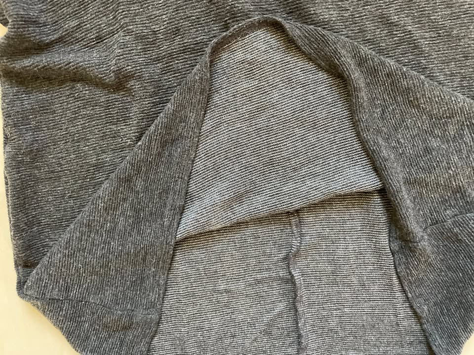 3461. nabízím k prodeji tyto šedé svetrové šaty, vel 40/tedy L, FF. Materiál s žebrovanou struktrurou s plátěným límcem, 65% polyester, 35% bavlna. Za krk na knoflíček. Nošené, bez vad jen zblízka prací chloupek, krásné