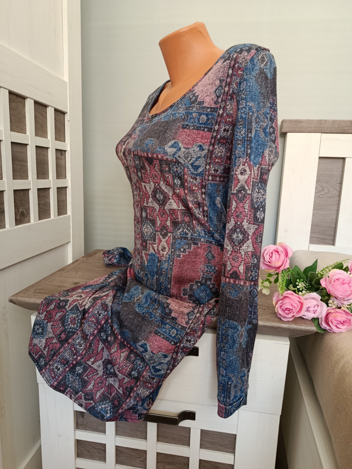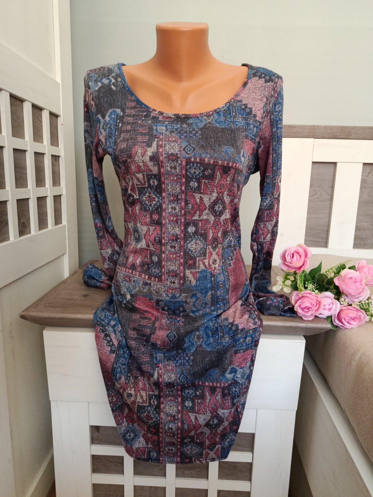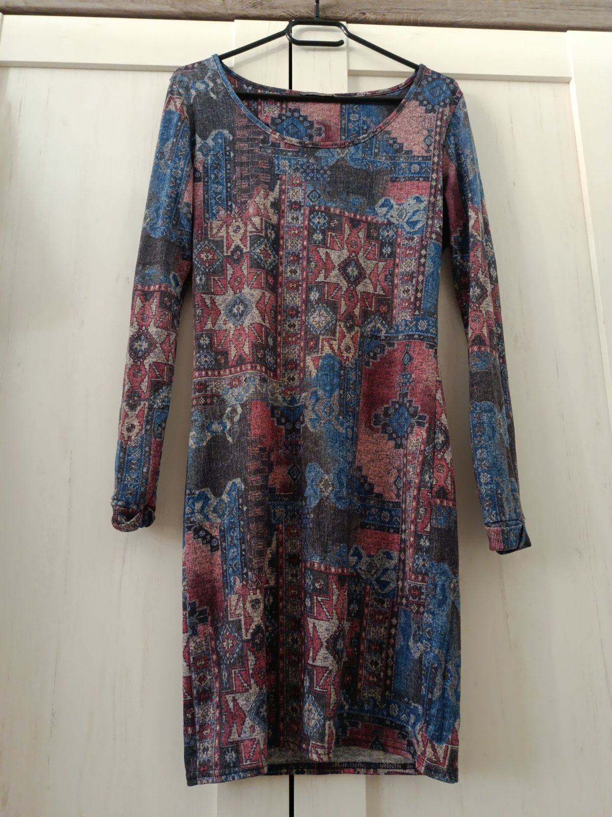 Super elastické šaty. Materiál úplet. Tudíž super v podzimním a zimním čase :-) I barvy na tkanině tomu odpovídají ...Tmavě modrá, bordová, šedá....Šaty jsou minimálně nošené, můžete doplnit i o pásek. Jsou ve velmi dobrém stavu, pruží....Velikost jsem ustřihla, ale padnou na S i M. Míry jsou v popisu....Míry : délka 90 cm, pas 2 x 38 cm - 2 x 48 cm, průramky 2 x 46 cm - 2 x 54 cm a délka rukávu od krku je 70 cm. Poštovné balíkovna za 85 Kč nebo zásilkovnou za 90 Kč.