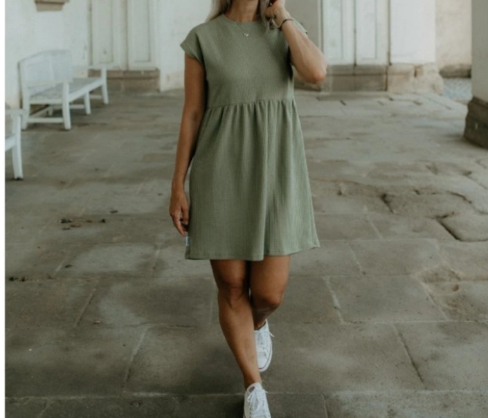 Olivové šaty vel 38,40, české výroby, jednou na době, neunosīm. Popis viz fota, barva v reálu na postavě,mně foťák zkreslil..šaty jsou volné, pružné, vhodné i pro tehulku, pohodlné, kvalitně ušité.