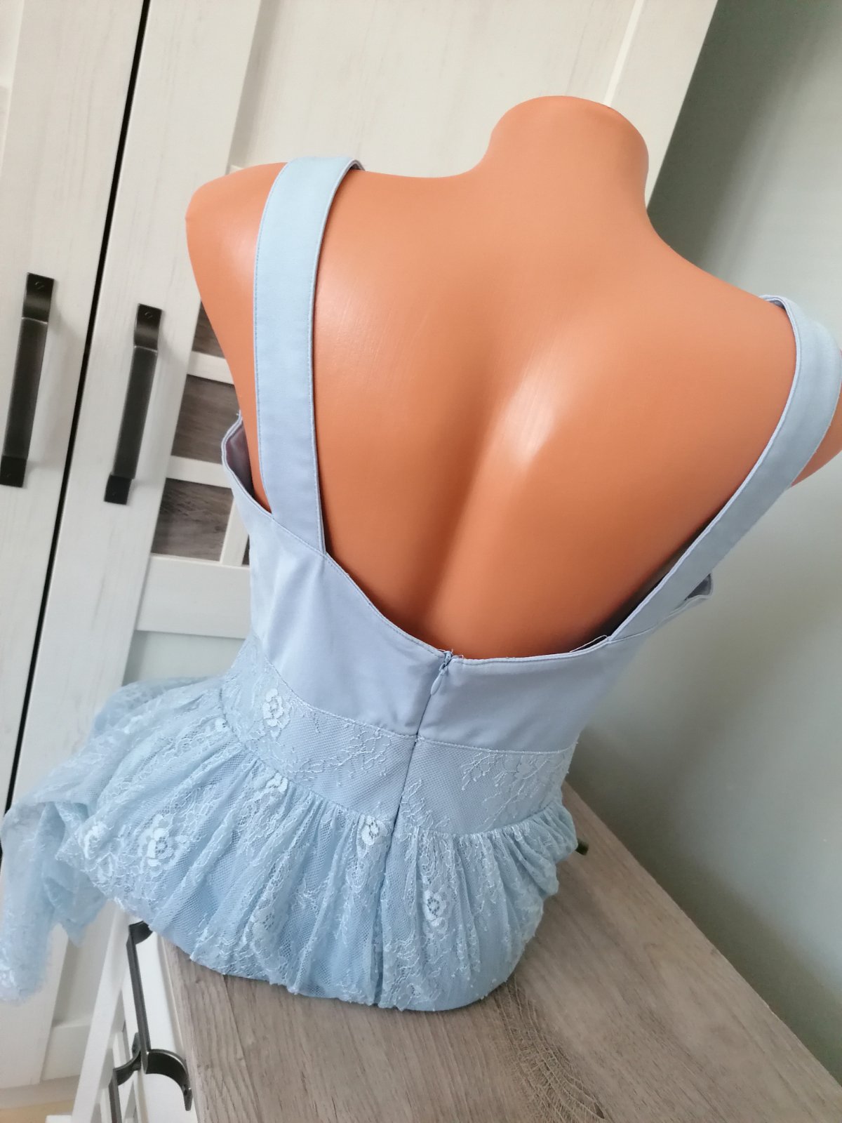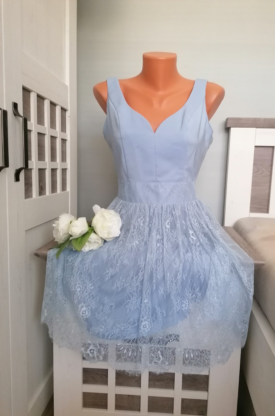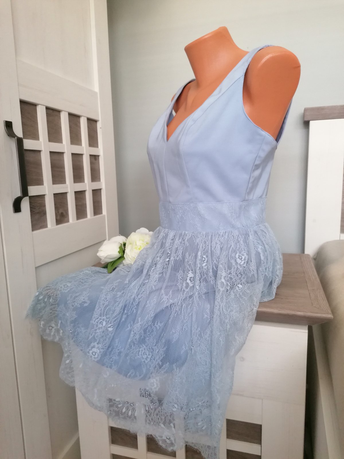 Pěkné šaty s krajkovou sukní. Sexy výstřih. Sukně má podšívku...Vzadu jsou na zip. Jednou na sobě. Velmi dobrý stav....Míry : délka 83 cm, pas vyšší 2 x 35 cm, průramky 2 x 46 cm. Materiál : 100 % polyester. Poštovné - balíkovna 85 Kč nebo zásilkovou za 90 Kč.