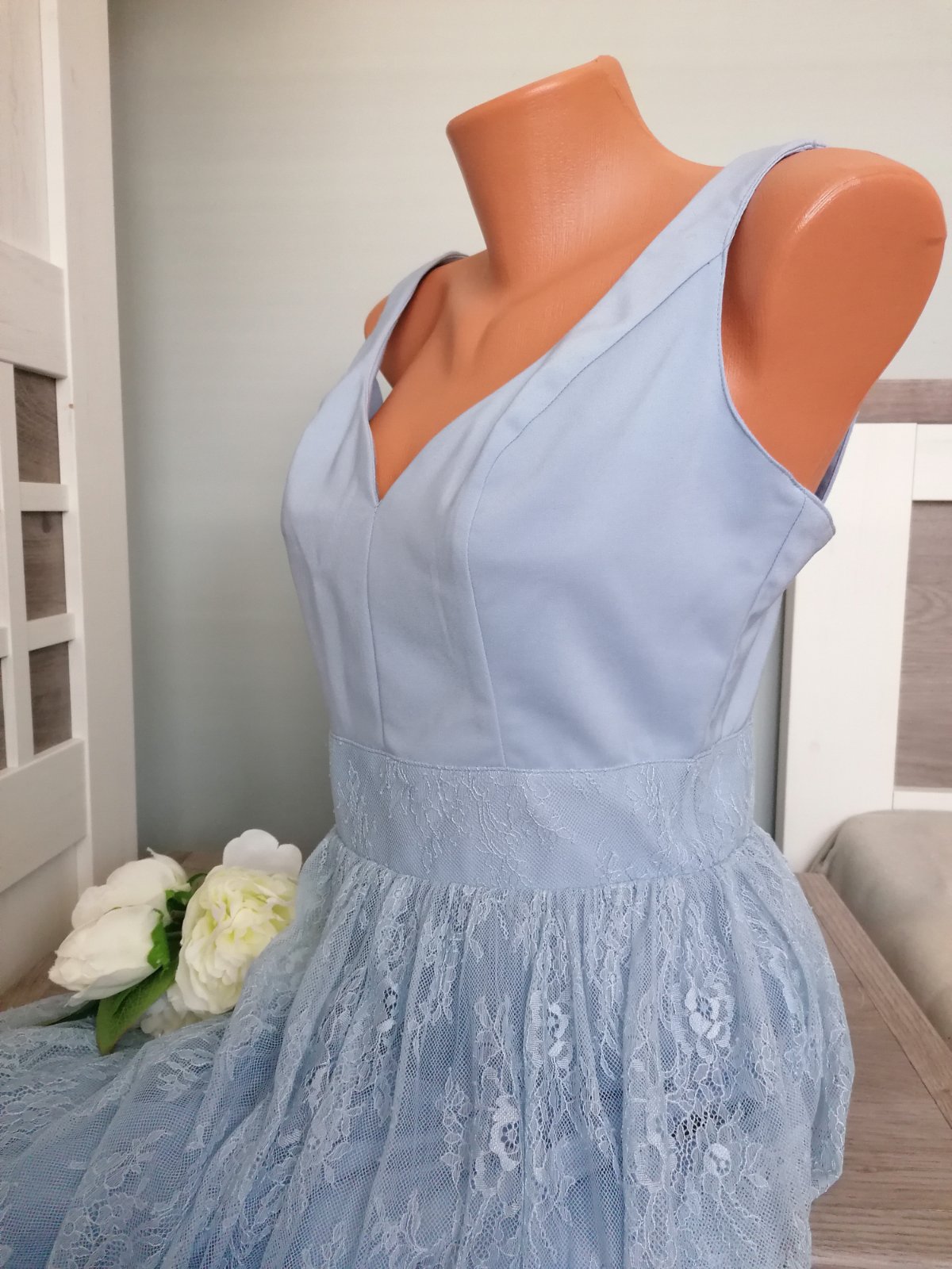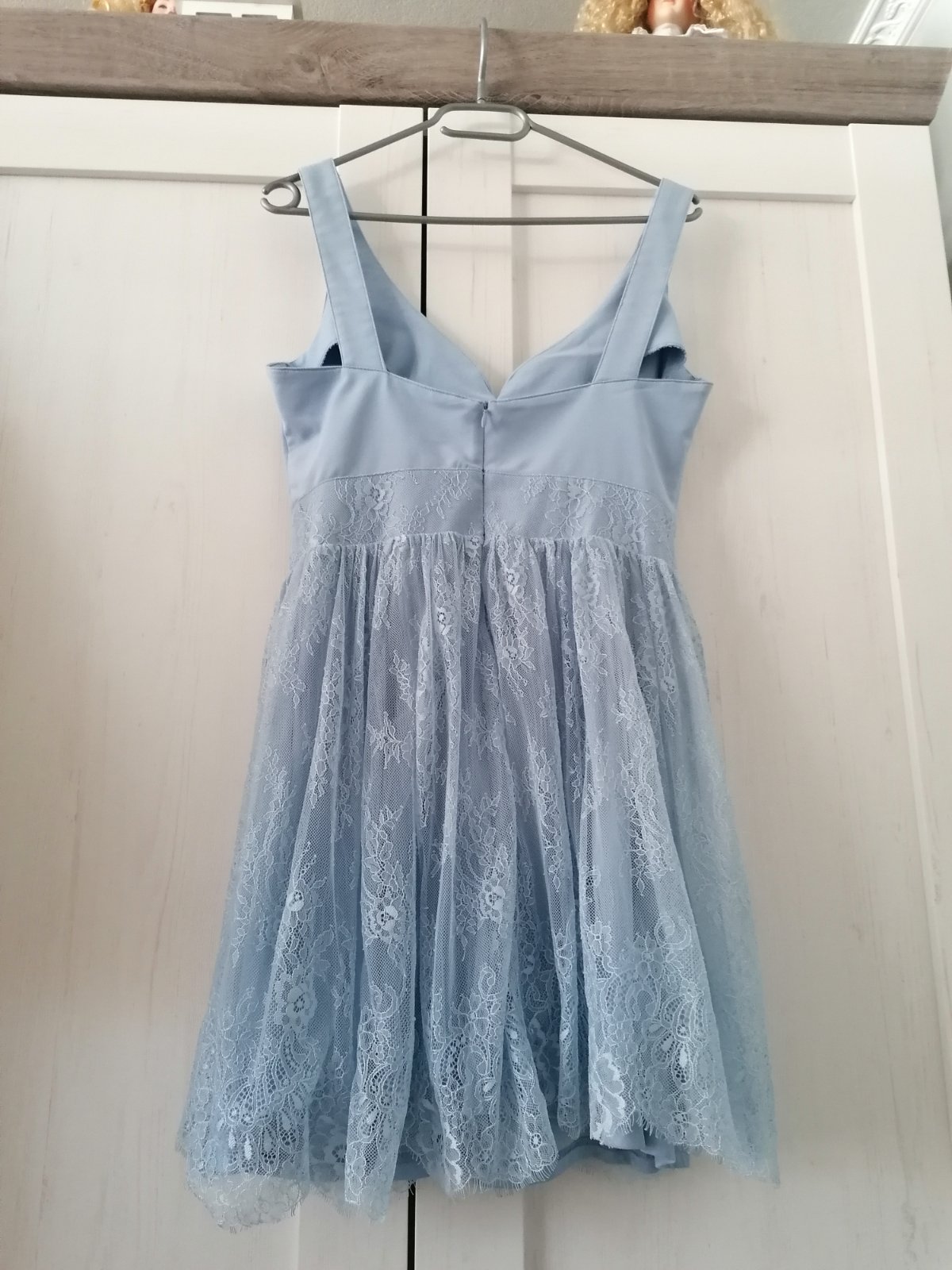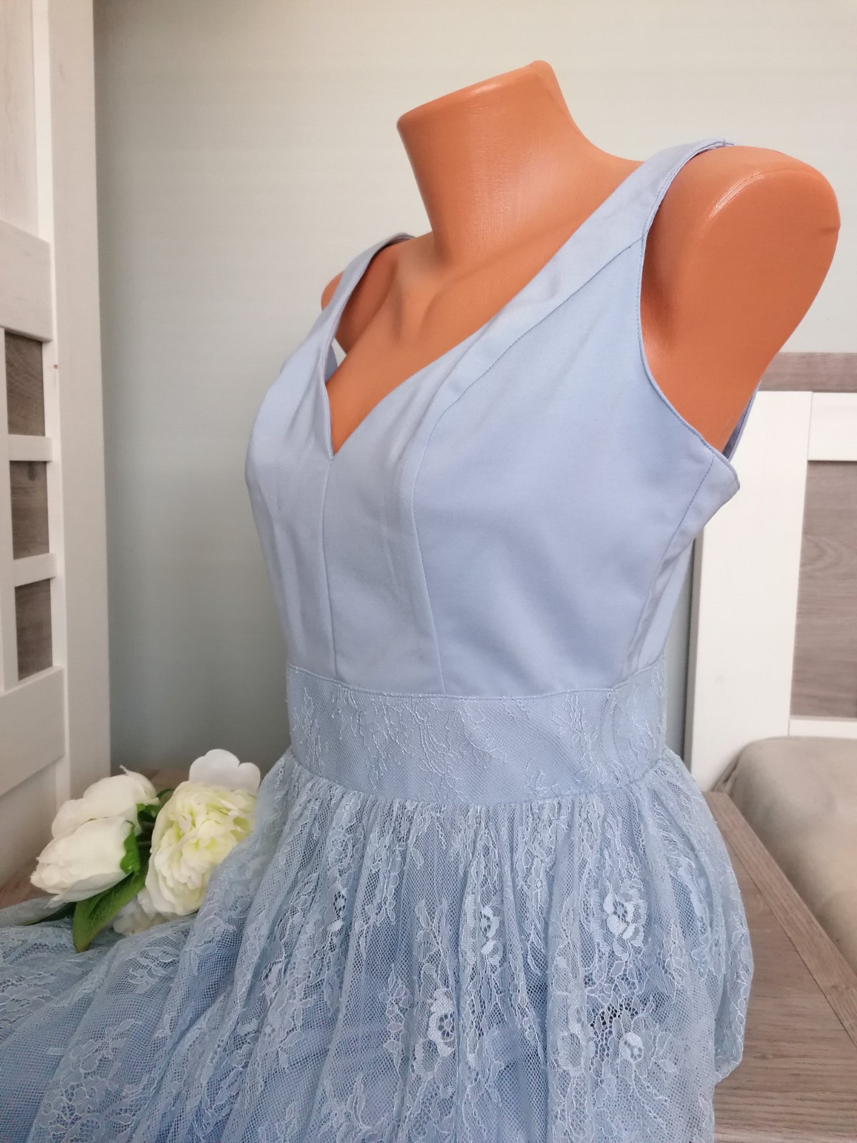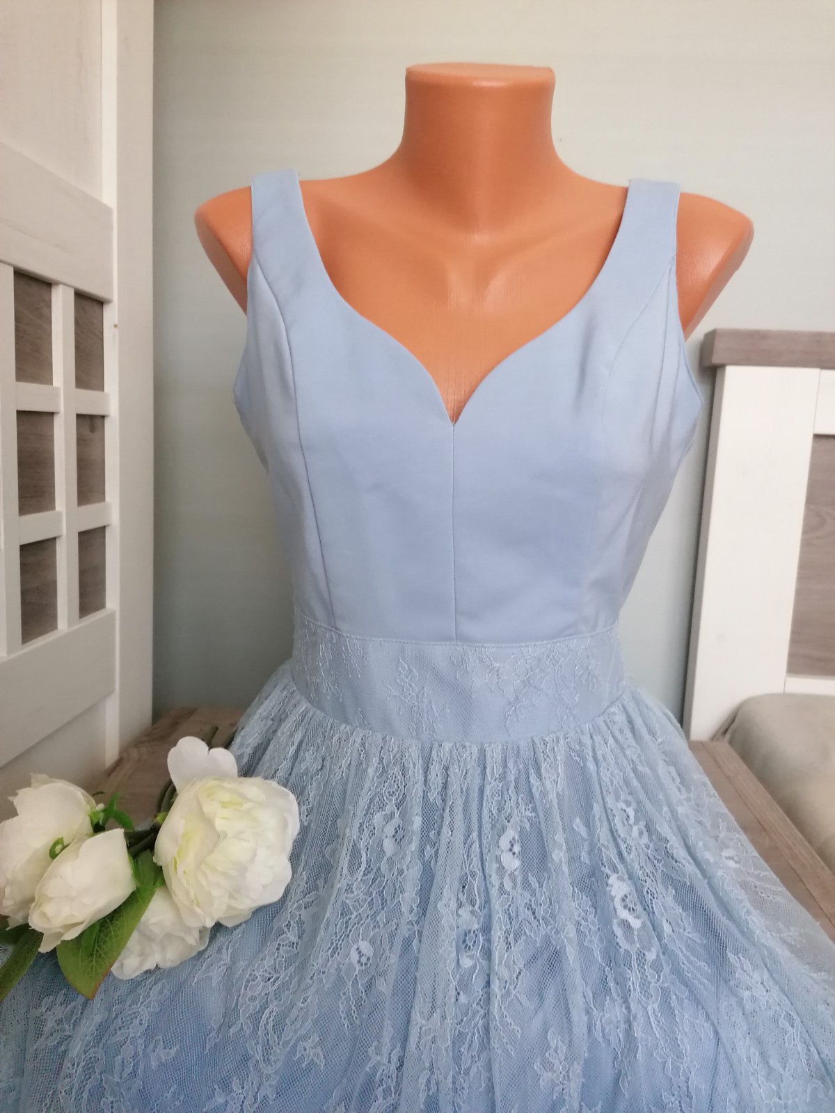 Pěkné šaty s krajkovou sukní. Sexy výstřih. Sukně má podšívku...Vzadu jsou na zip. Jednou na sobě. Velmi dobrý stav....Míry : délka 83 cm, pas vyšší 2 x 35 cm, průramky 2 x 46 cm. Materiál : 100 % polyester. Poštovné - balíkovna 85 Kč nebo zásilkovou za 90 Kč.