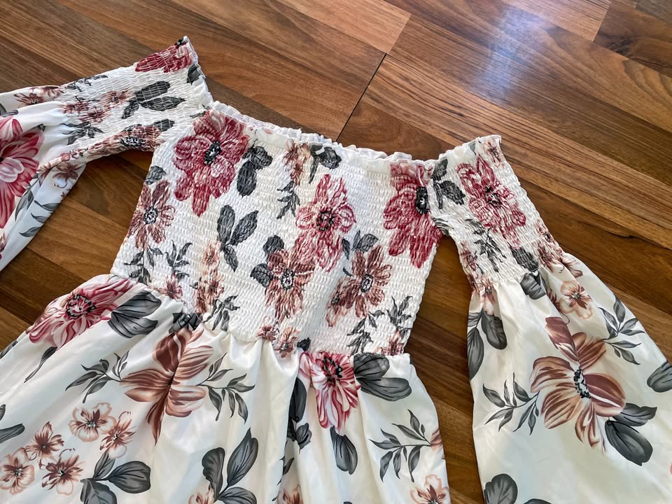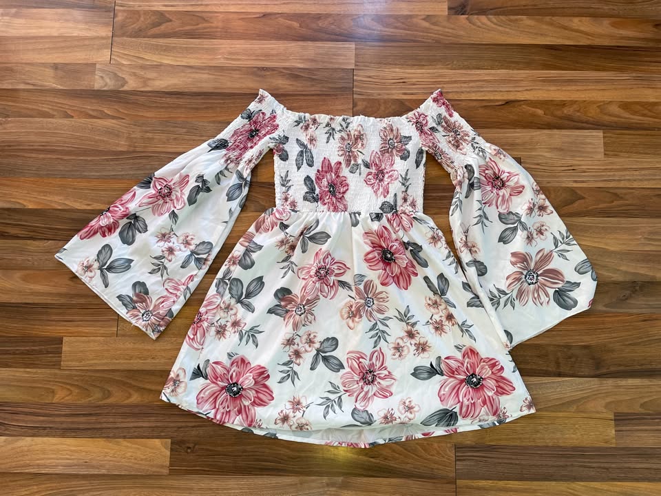 2941.vankra. nabízím k prodeji tyto nenošené květtinové minišaty, vel M, Shein. Na hrudník žabičkování, široké rukávy stažené na ramena. Materiál umělý, 100% polyester. V sukni spodnička. Nenošené, jen vyprané a uložené ve skříni, bez avd, krásné