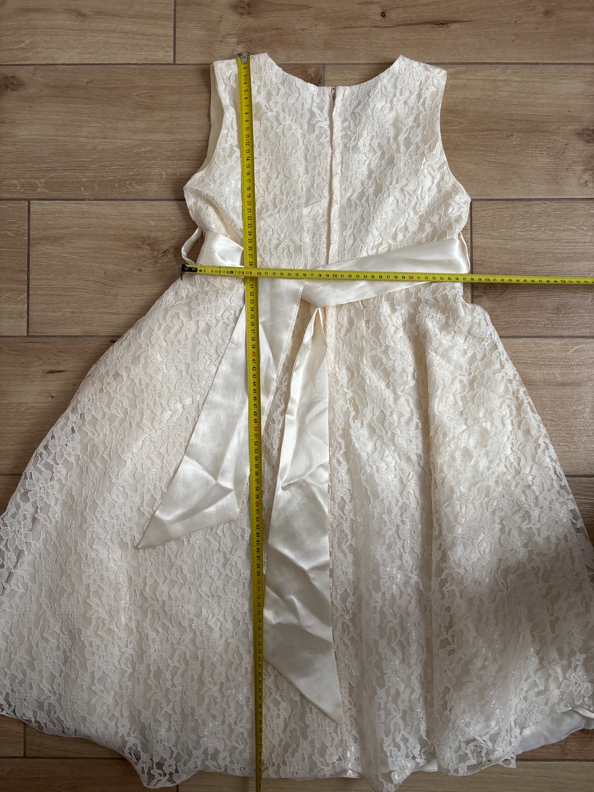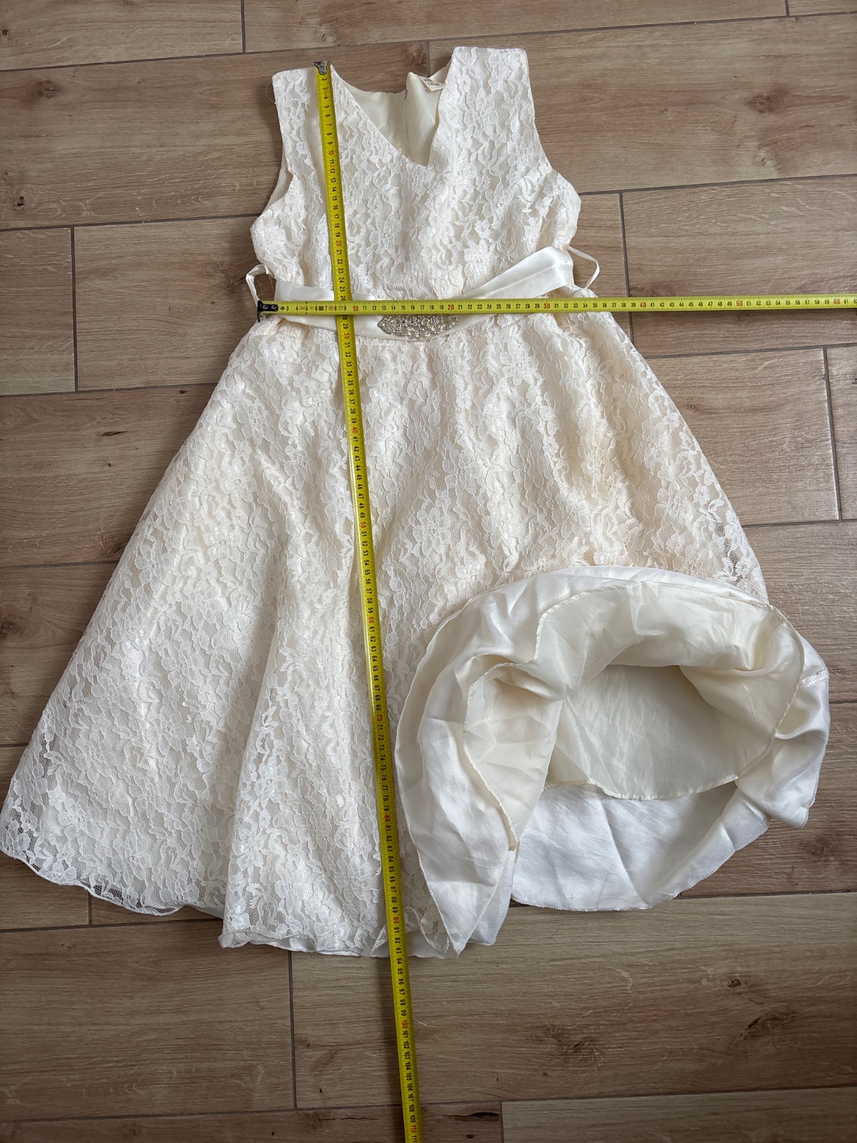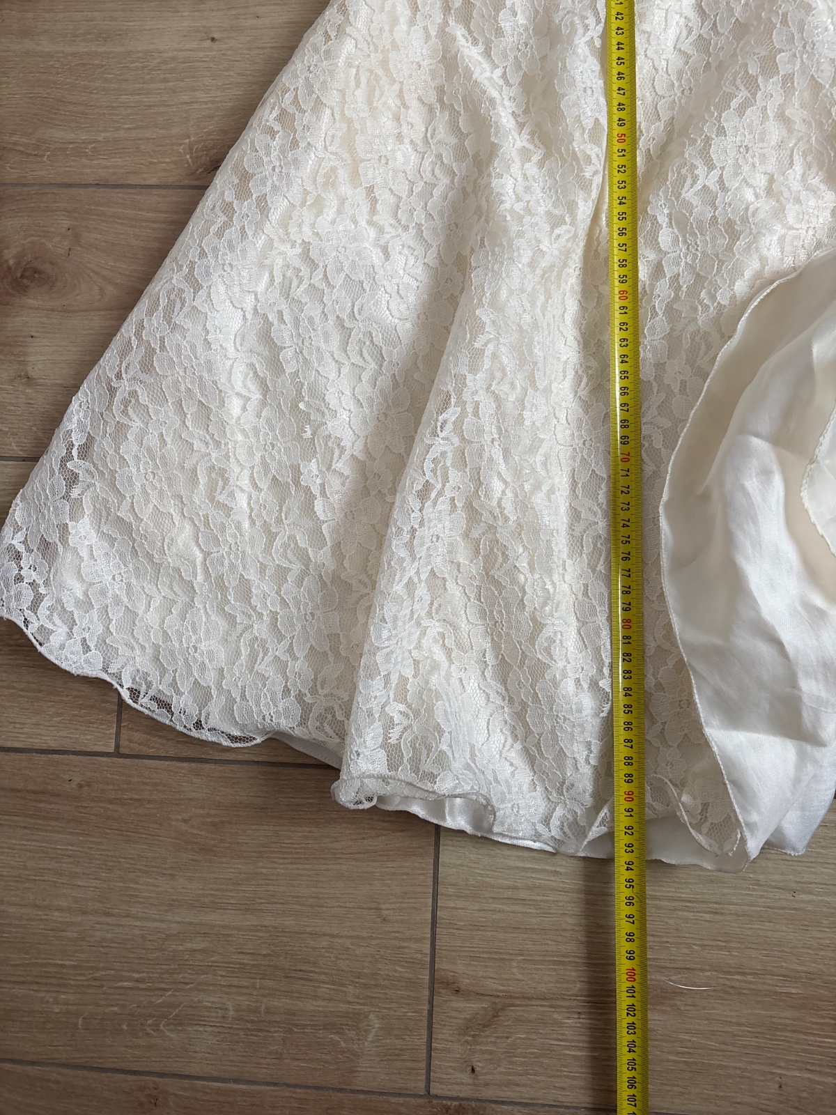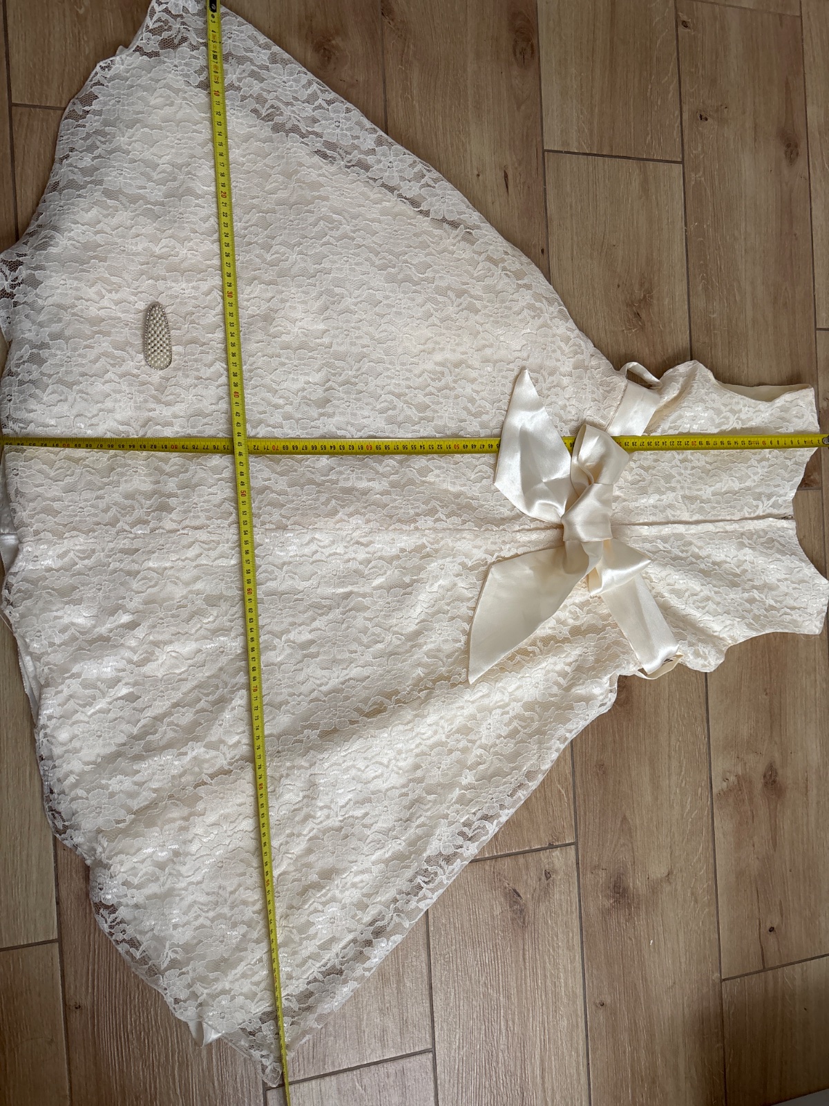 Jsou jemnější smetanové. Zapínání na zip na zádech. Daji se nosit určitě dřív. Sem tam maličko nitka ze spodničky