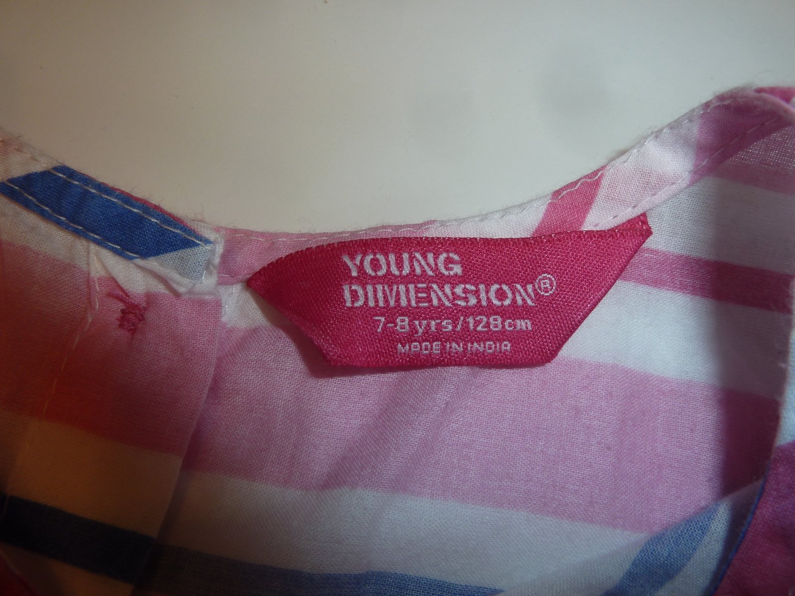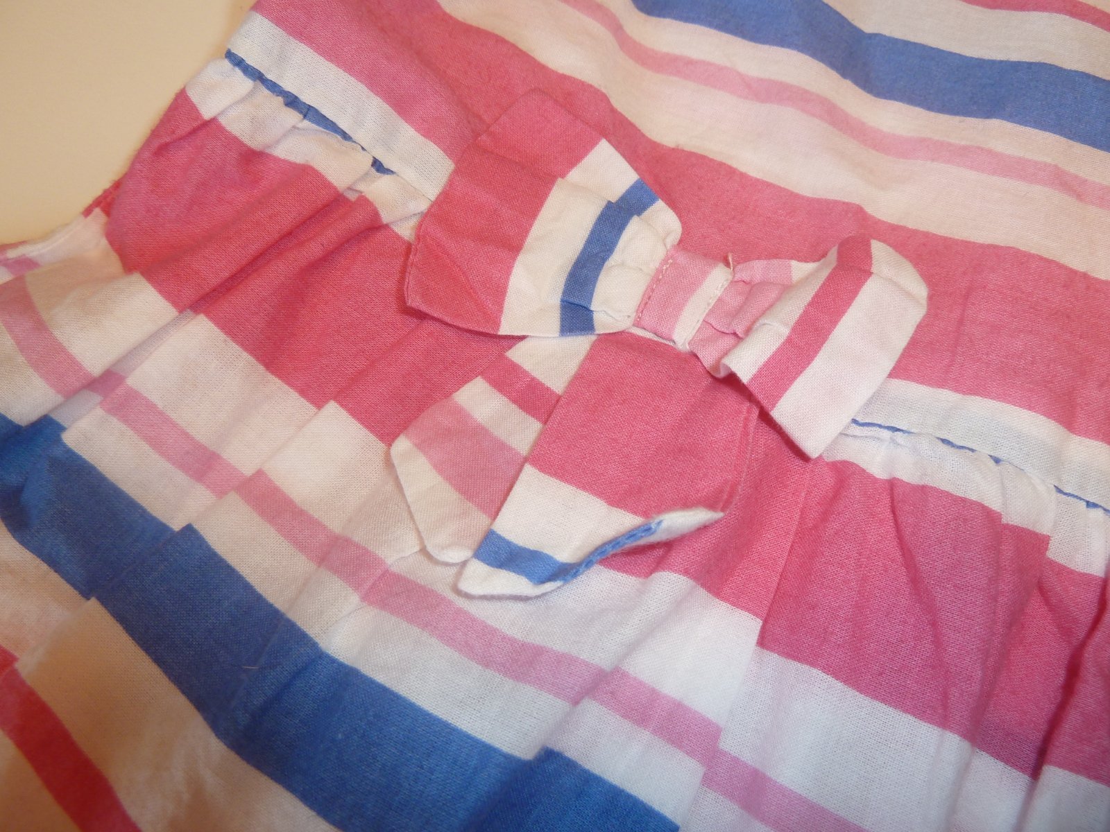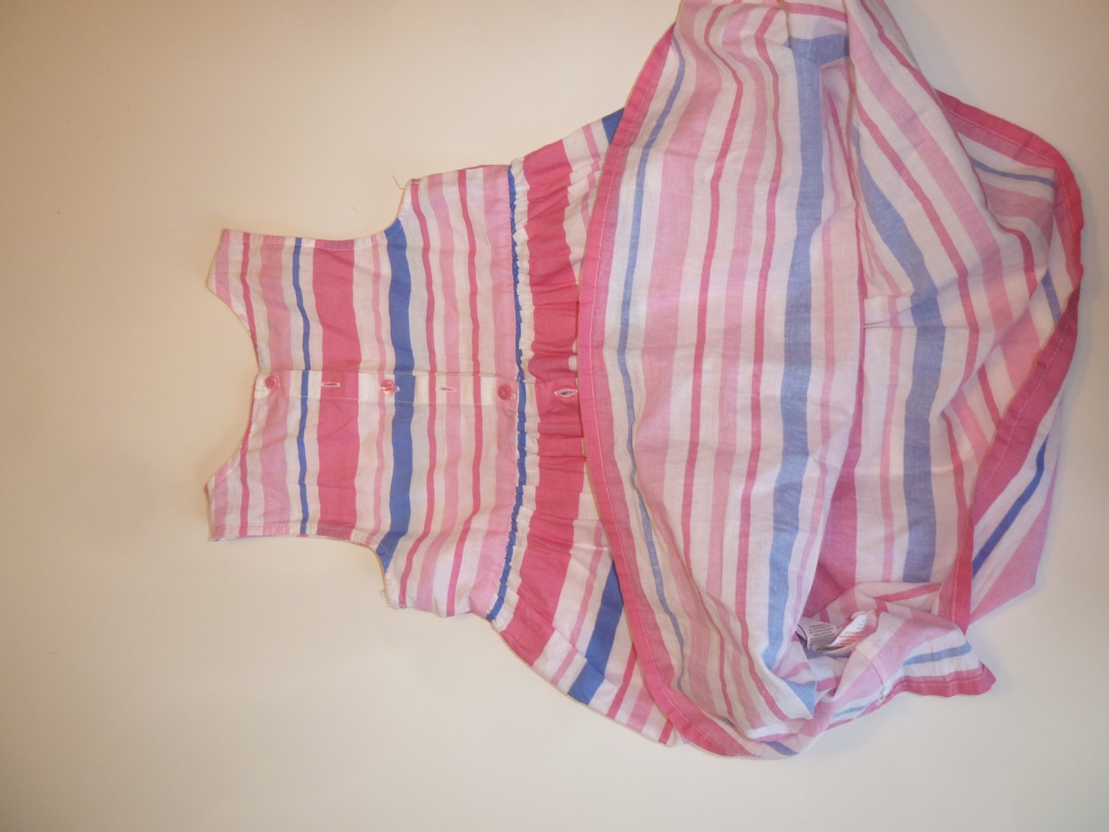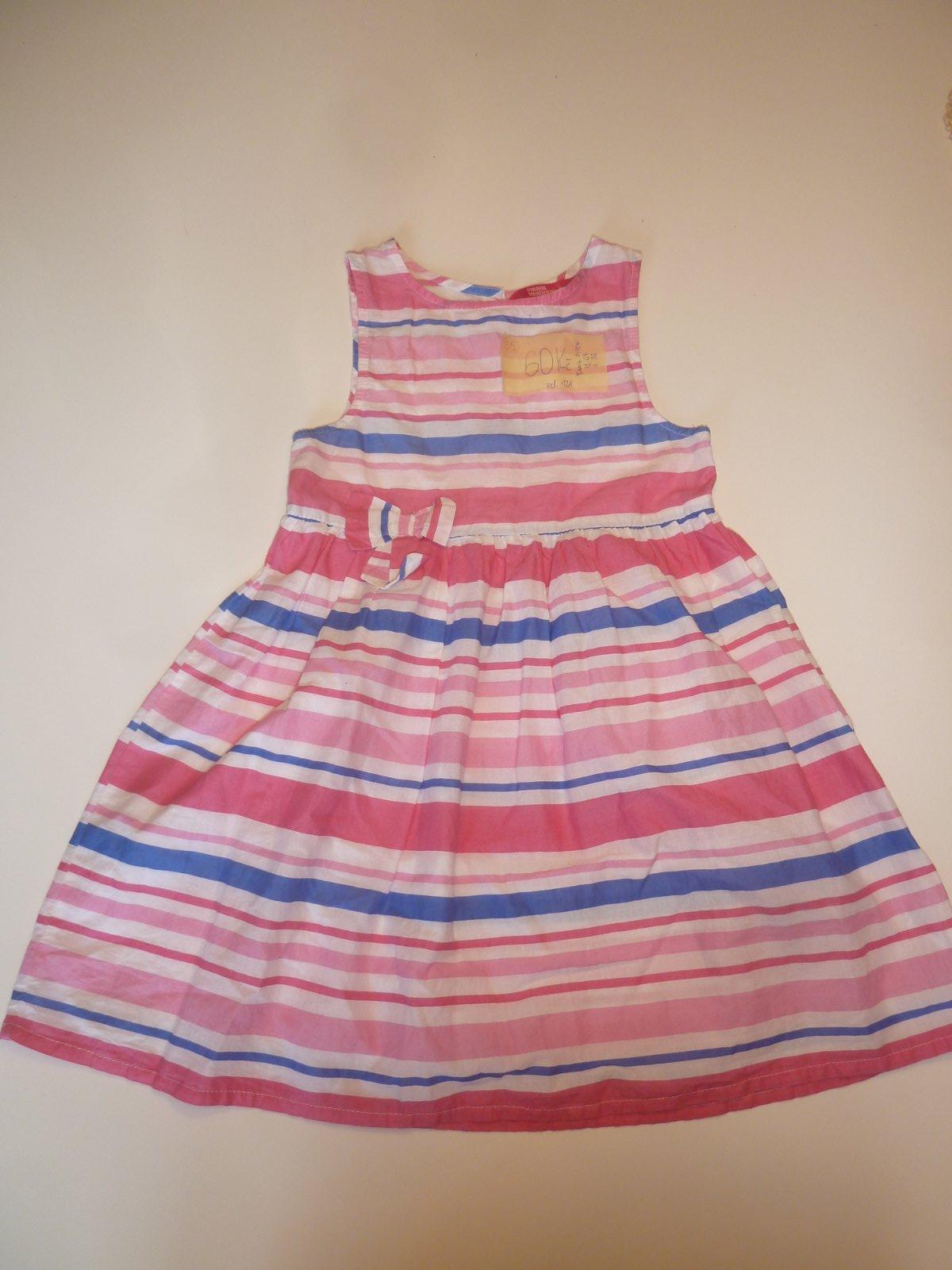 Plátěné pruhované lehké šaty bez podšívky. Zapínání na zádech na konoflíky. Široká sukně. Délka 64, šířka 32