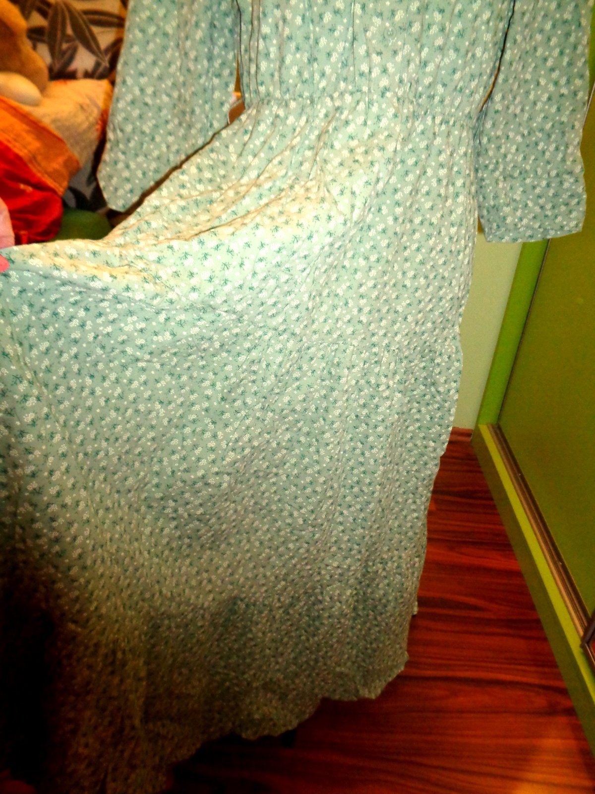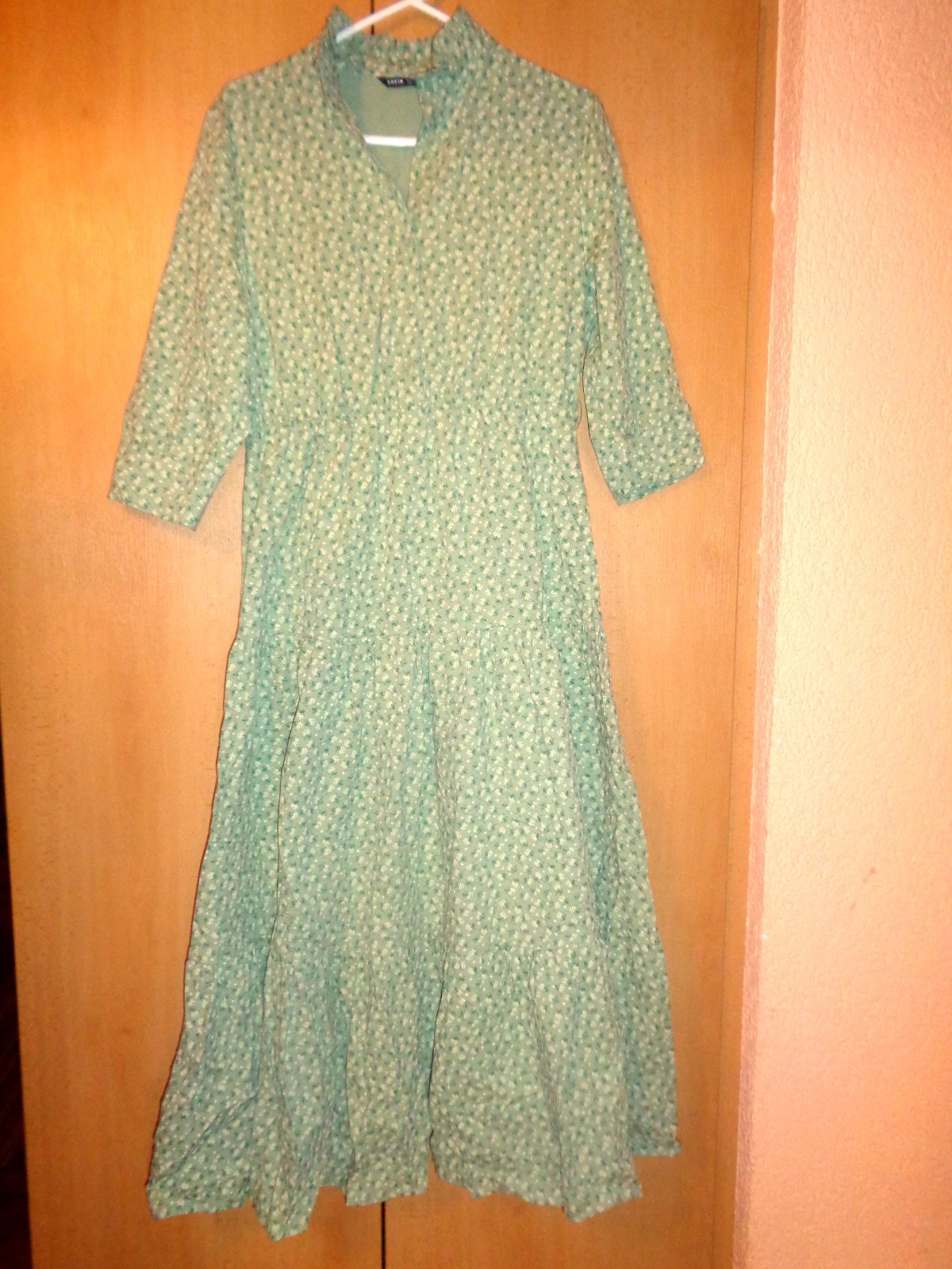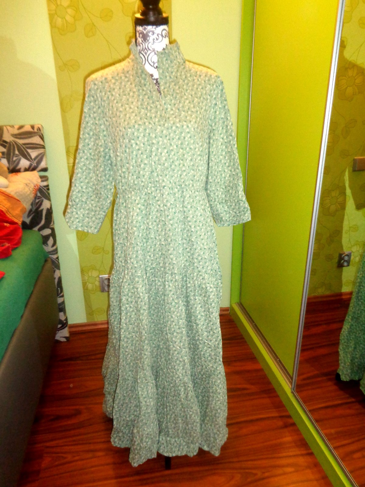 NOVÉ - JEN BEZ CEDULKY. VELMI PŘÍJEMNÝ MATERIÁL 100% STŘEDNĚ SILNÁ BAVLNA. HRÁŠKOVĚ ZELENÁ BARVIČKA - DROBNÉ NAŽLOUTLÉ KVÍTKY. STOJÁČEK S VOLÁNKEM. PŘEDNÍ SEDÝLKO NA KNOFLÍČKY. VELMI BOHATÁ VOLÁNOVÁ SUKNĚ - OPRAVU MAXI A NÁDHERNÁ. RUKÁV 3/4. DOPORUČUJI - LUXUSNÍ.