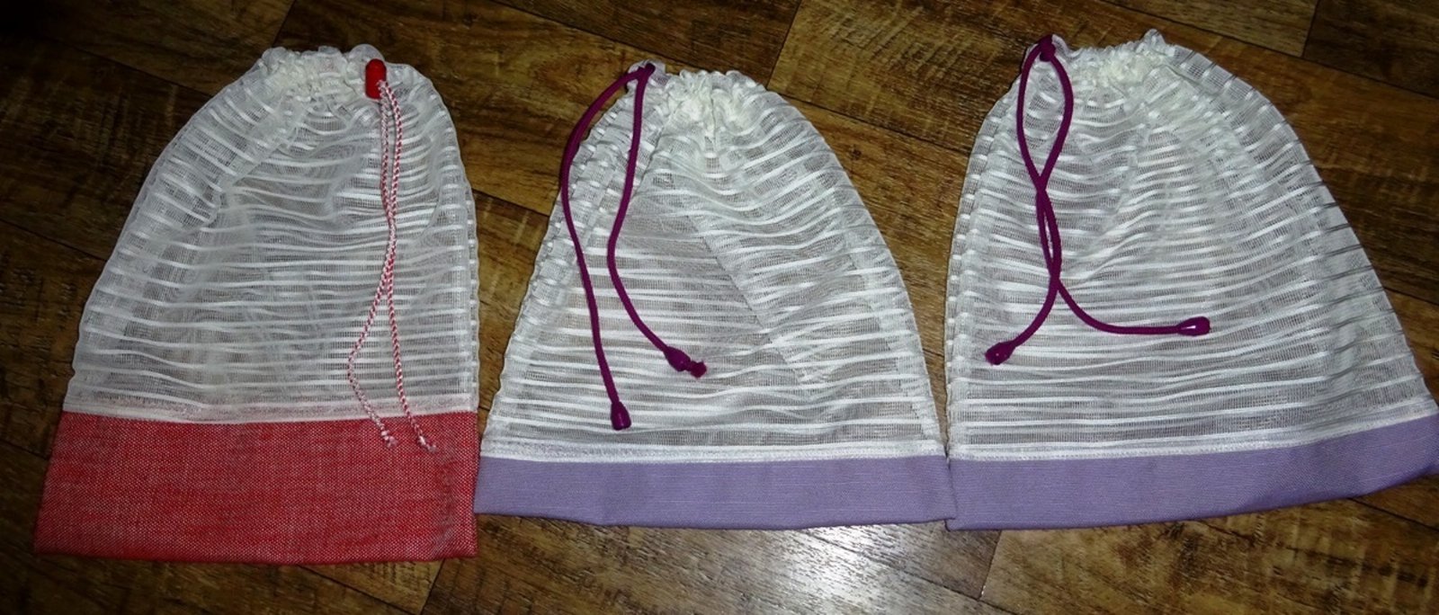 rozměry 31-36x33-36=40,- a 27x33=35,- v bílé variantě ale mohu ušít i v barevné variantě jak bavlna tak sítovina se šnurkami,koncovkami a brzdičkami. Také lze ušít jiný rozměr i větší.Vše z nového materiálu.Sítovina prodyšná a průhledná,dole dekorační látka,bavlna či směs.