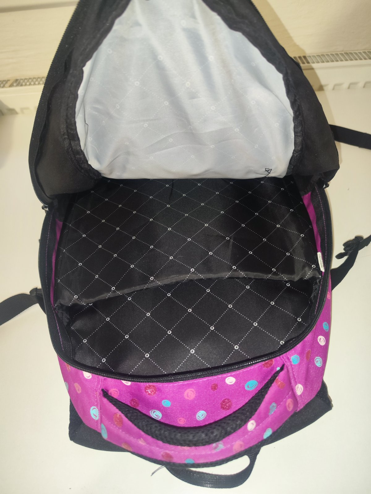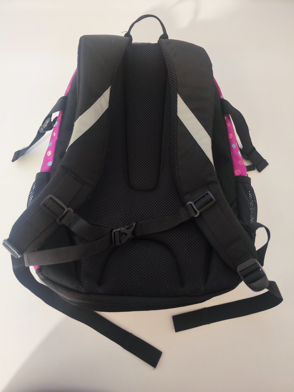Prodám školní batoh Glitter Stil, který je vhodný pro 2. stupeň ZŠ. Je ergonomicky tvarovaný, odlehčený a má 3D zádový systém. Polstrování je z prodyšného materiálu. Na bocích batohu jsou kapsy na lahev na pití. Skládá se ze 3 komor, hlavní a prostřední komore je vhodná pro formát A4, v přední kapse je organizér na drobné předměty, klíče apod. Kapsa na notebook je v zadní komoře. Rozměr 46 x 34 x 20 cm. Má postranní stahovací přezky na ztenčení prázdného batohu, bezpečnostní prvky na všech stranách batohu, polstrované ramenní popruhy, hrudní pás pro lepší rozložení váhy batohu na zádech, zpevněné vyztužené dno, voděodolný materiál – 100% polyester. Zipy jsou funkční, batoh je vyčištěný, cena 400 Kč, v Brně možné osobní předání.