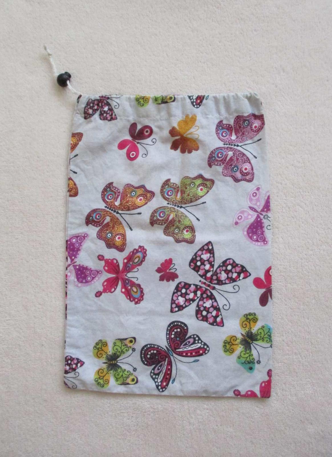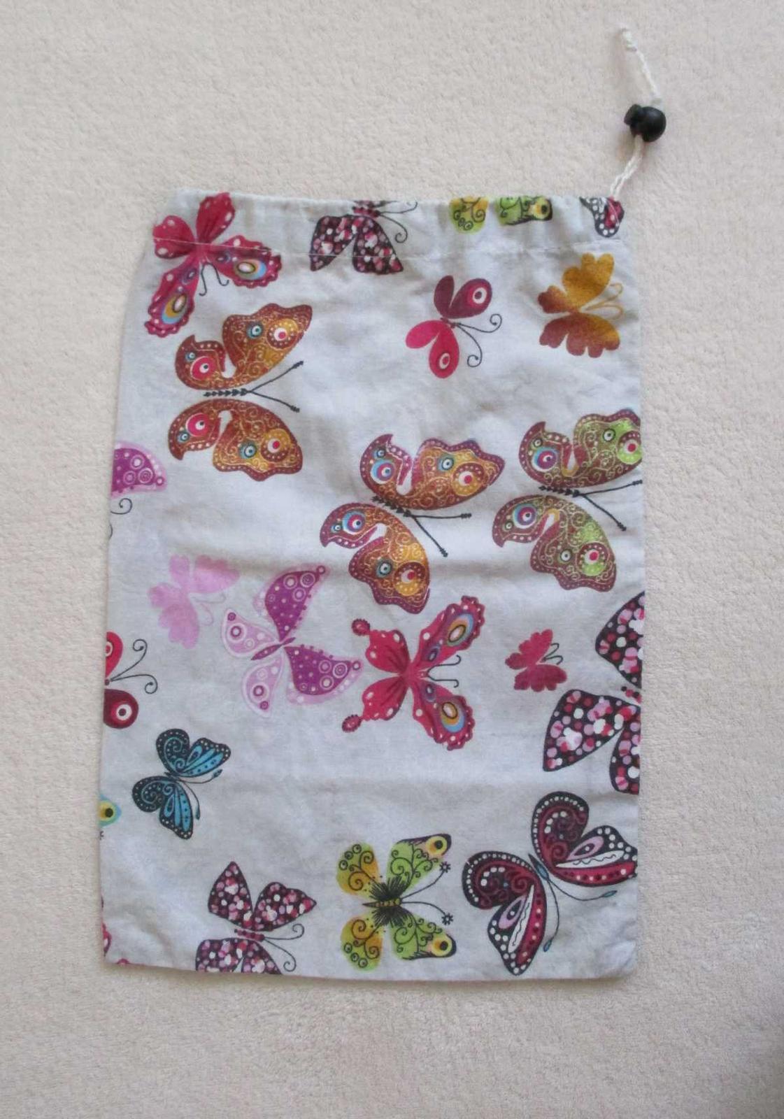 Nabízím textilní sáček na přezůvky, známky praní, na některých místech skvrny viz foto (není příliš vidět), chlupatá šňůrka. Jinak bez vady. Rozměry 22,5x33 cm. Daruji k jakékoliv objednávce.