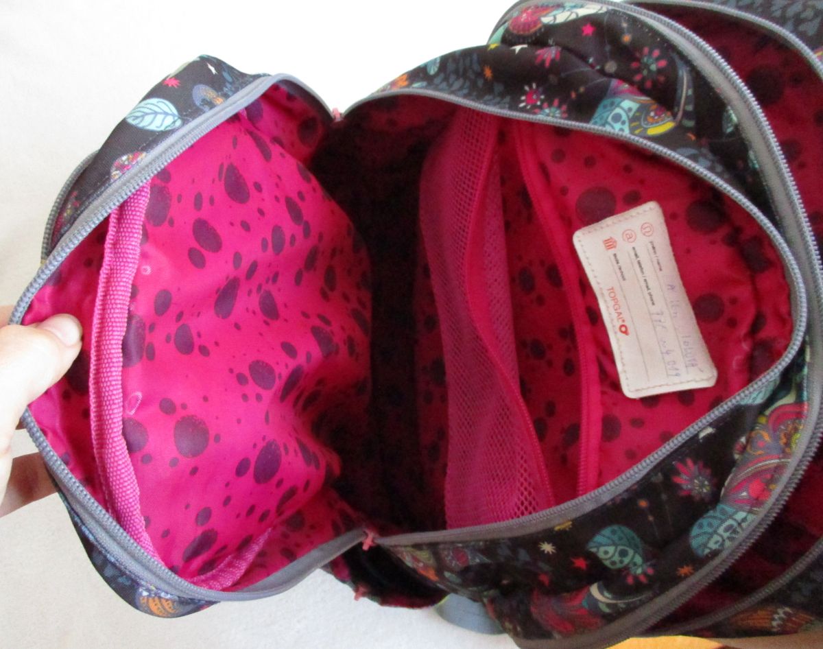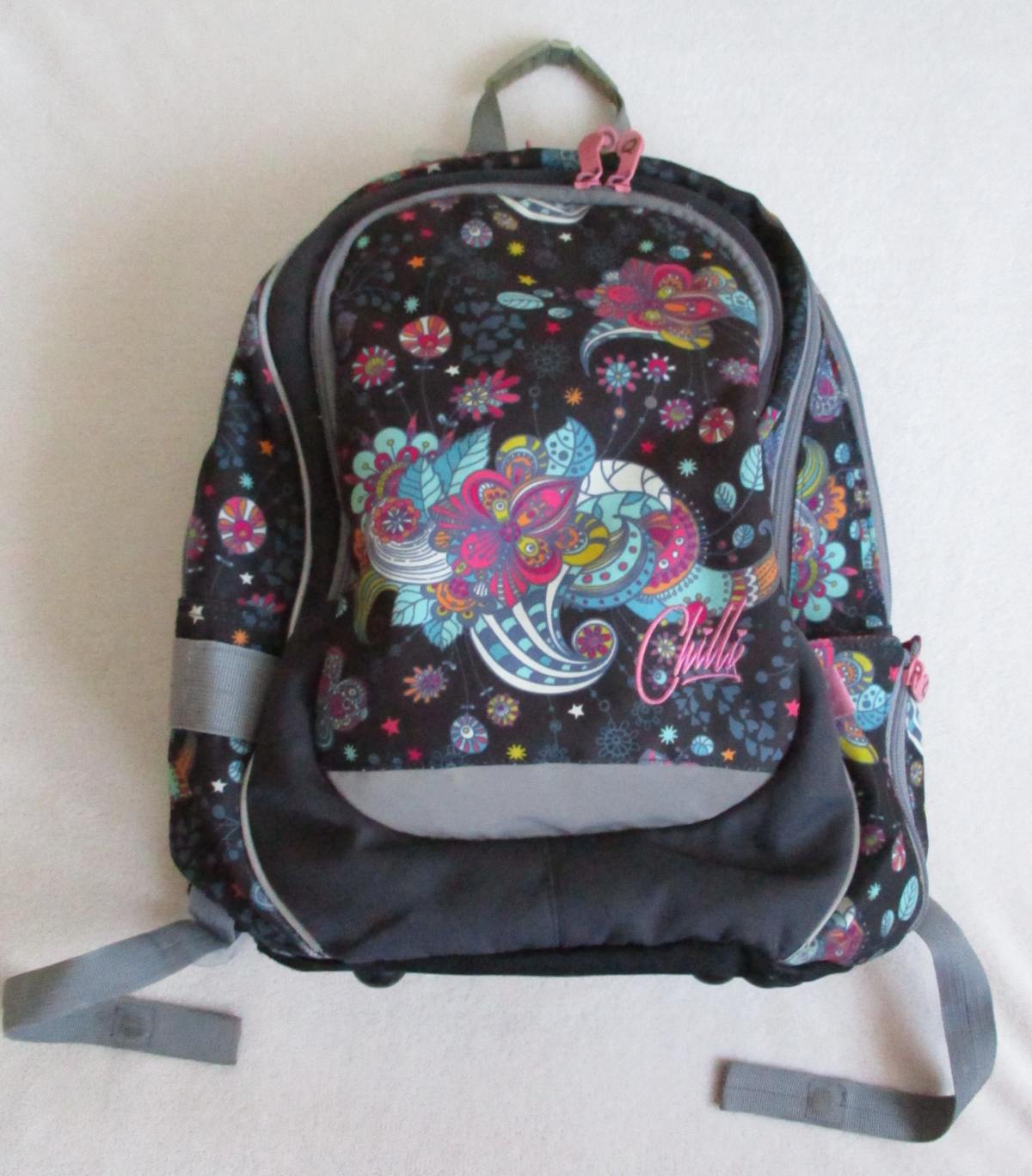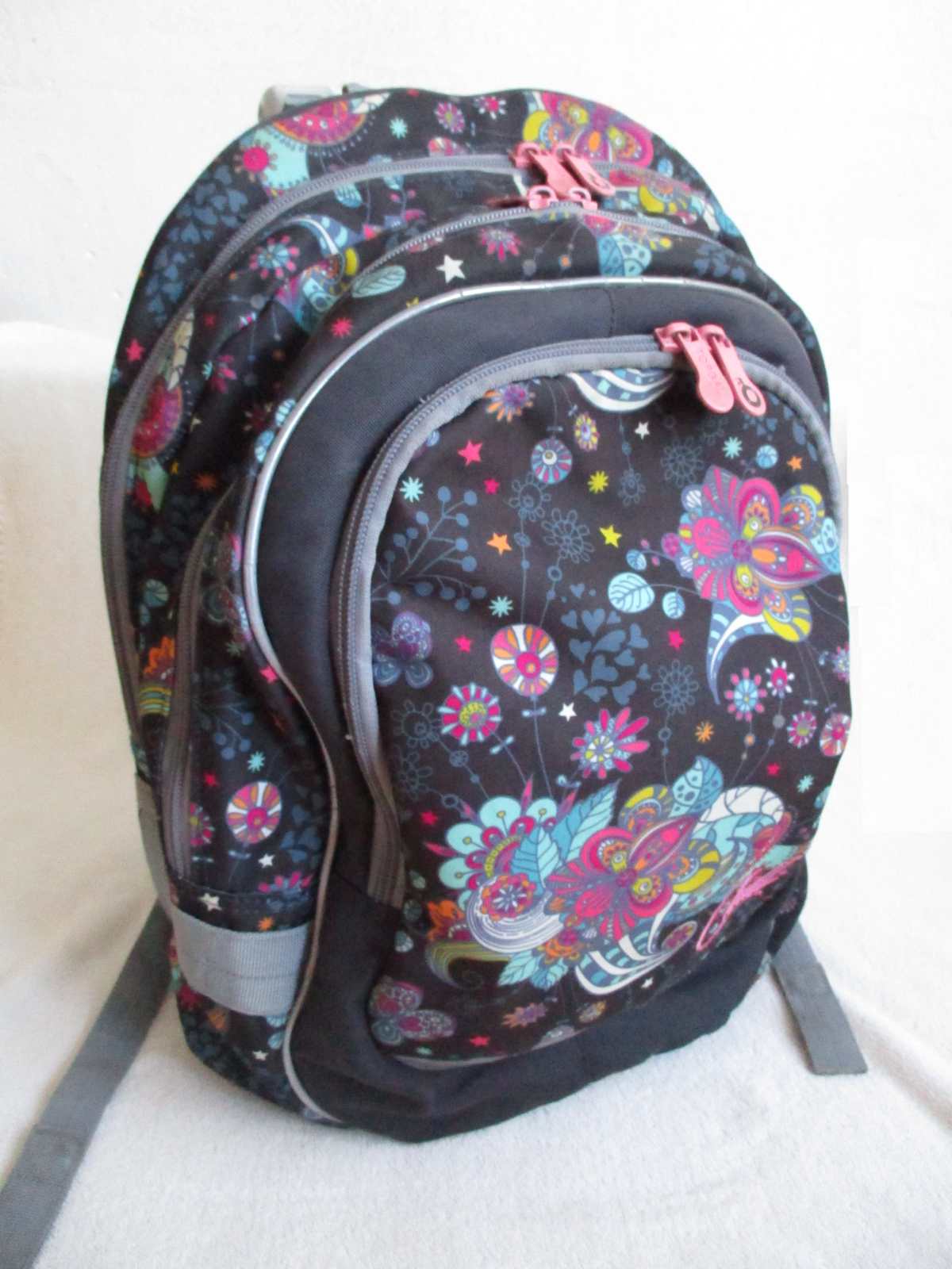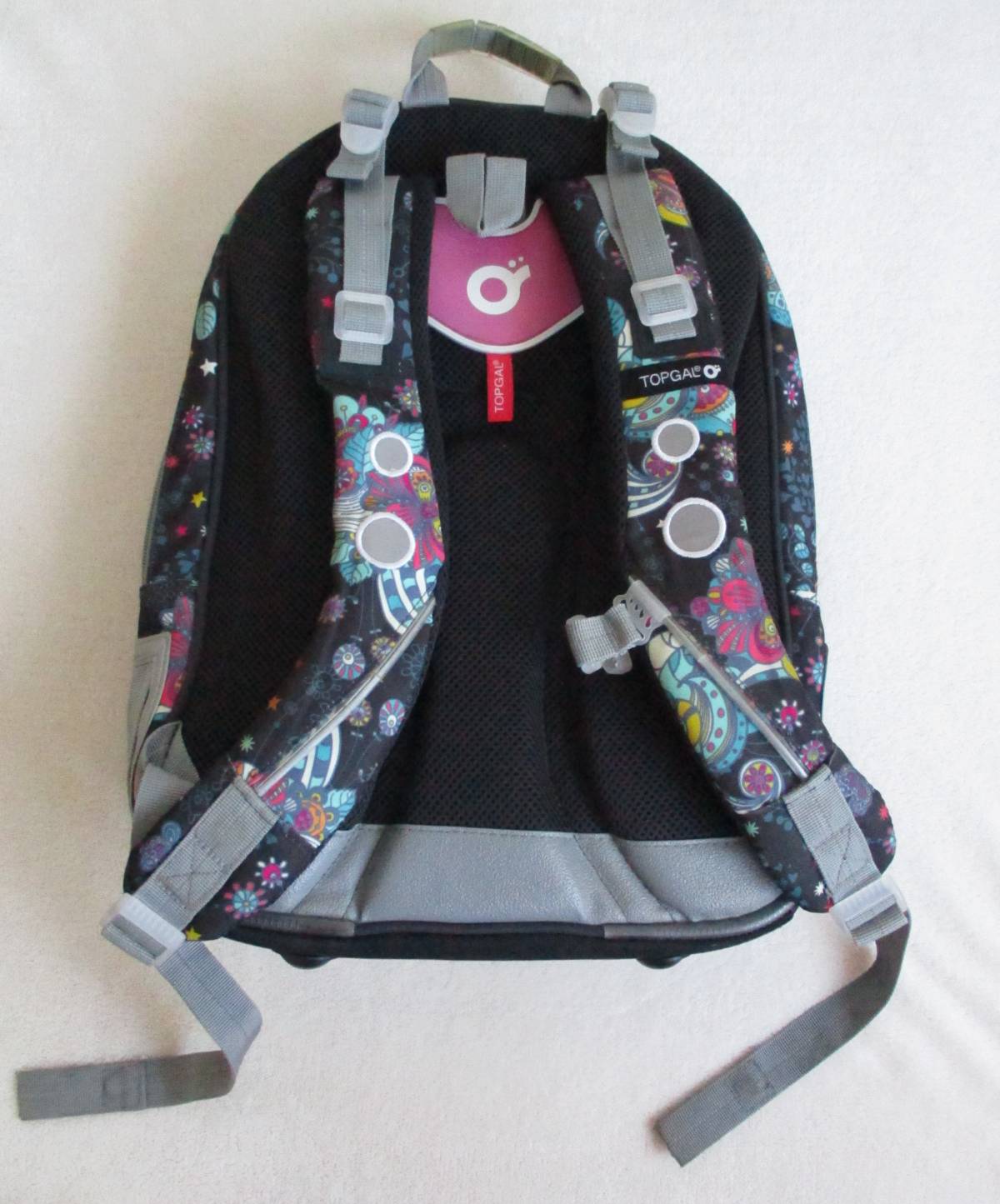 Nabízím dívčí školní batoh zn. Topgal, vhodný pro první stupeň. Podkladová barva tmavošedá. Menší vady viz fotky (odřené rohy, praská rukojeť, suchý zip u vnitřní kapsy uvolněný a roztřepený). Hrudní popruh (lze nasadit nebo sundat), hliníková kostra pro pevnější záda (nepoužívali jsme). 3 hlavní kapsy, dvě malé vnitřní kapsy, uvnitř karabinka na klíče, boční kapsa, reflexní prvky. Hmotnost necelý 1 kg. V nabídce mám i další školní potřeby.