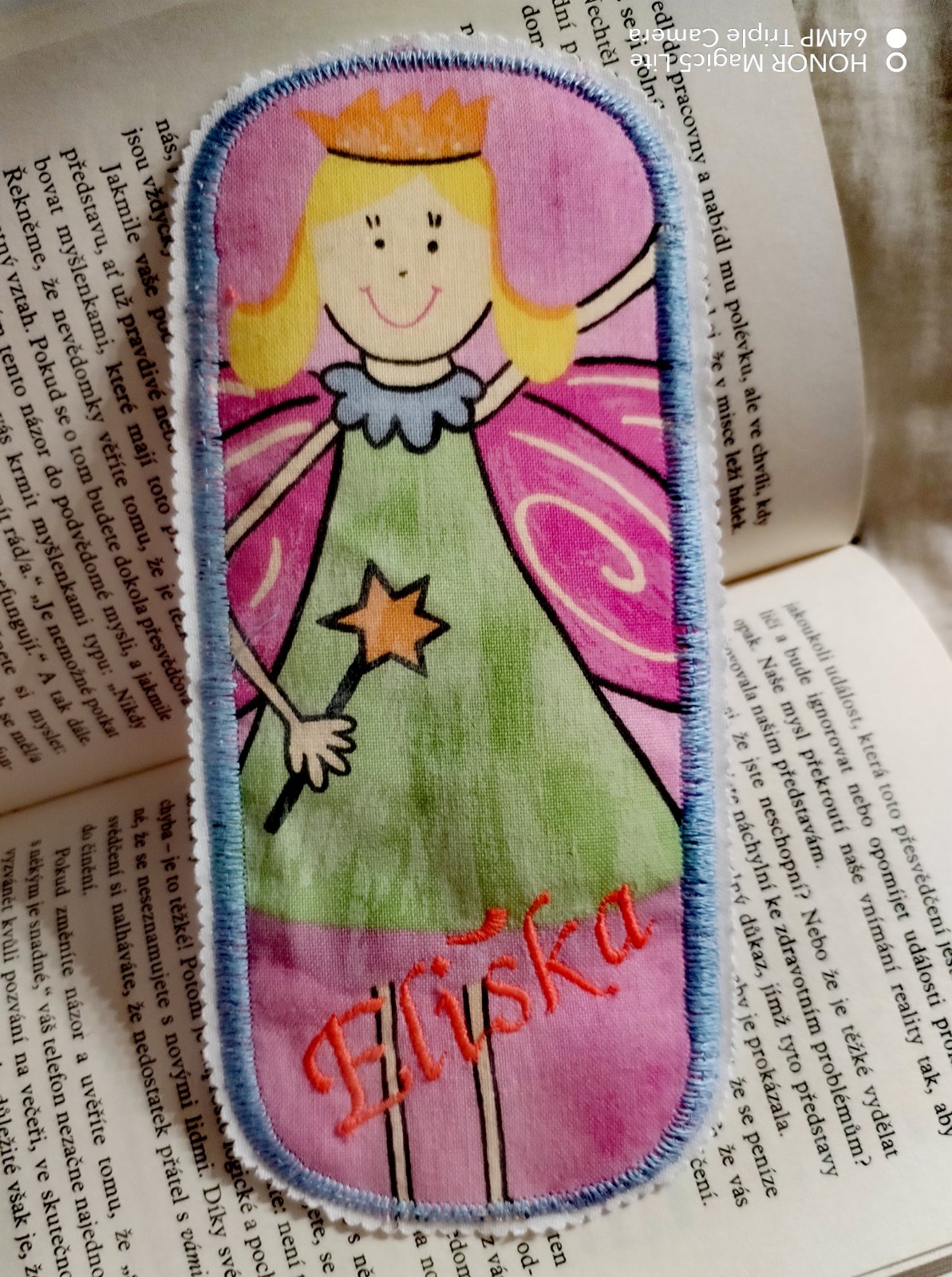 Princeznovská záložka do knížky přímo pro Elišku, cca. 18 * 8cm. Nová, vhodná i jako dárek. Mohu vyrobit se jménem na přání za + 45,-. Tato je nevyzvednutá objednávka a proto si za jméno nic nepočítám. V případě zájmu nakoukněte do mé nabídky je tam toho víc a třeba vám v ceně jednoho poštovného 90,– padne ještě něco do oka a využijeme ho na 100% nebo při nákupu nad 1000,- je pošta úplně GRÁTIS..!! Zásilkovna 80,-