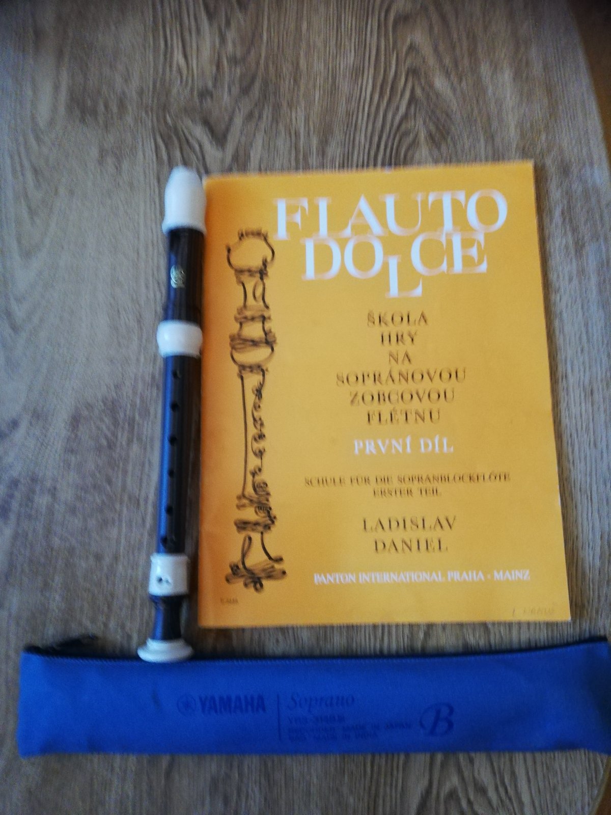 Prodám sopránovou zobcovou flétnu a 1. díl Škola hry na zobcovou flétnu.