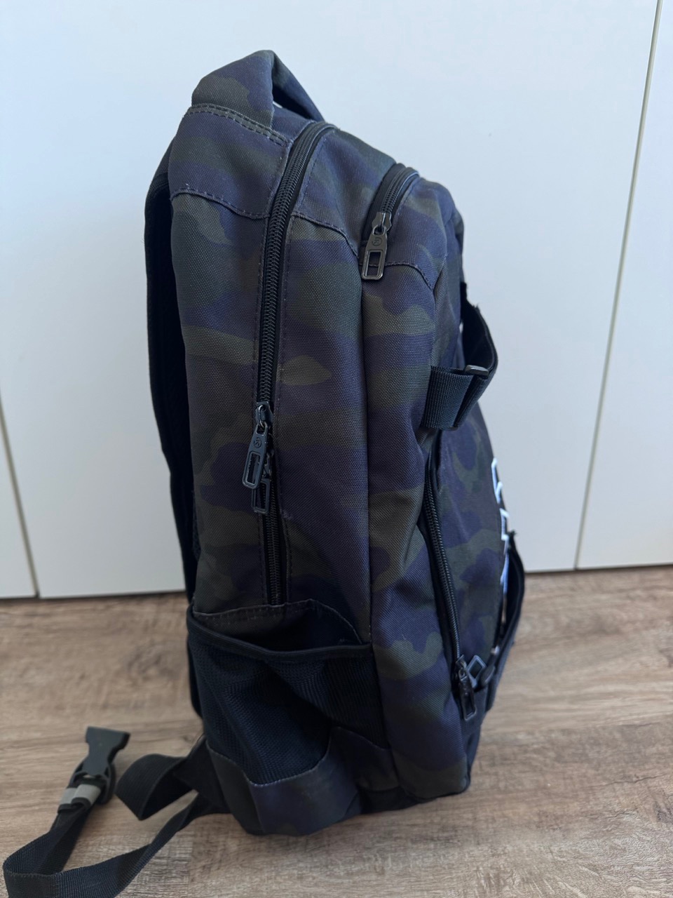 Min. nošený - Top Stav! Pevný materiál, polstrovaná záda, velmi prostorný, nastavitelné ramenní popruhy, 2 velké, 1 střední, 1 menší kapsa na zip, 2 boční malé kapsy, 1 kapsa na laptop a další malé...
