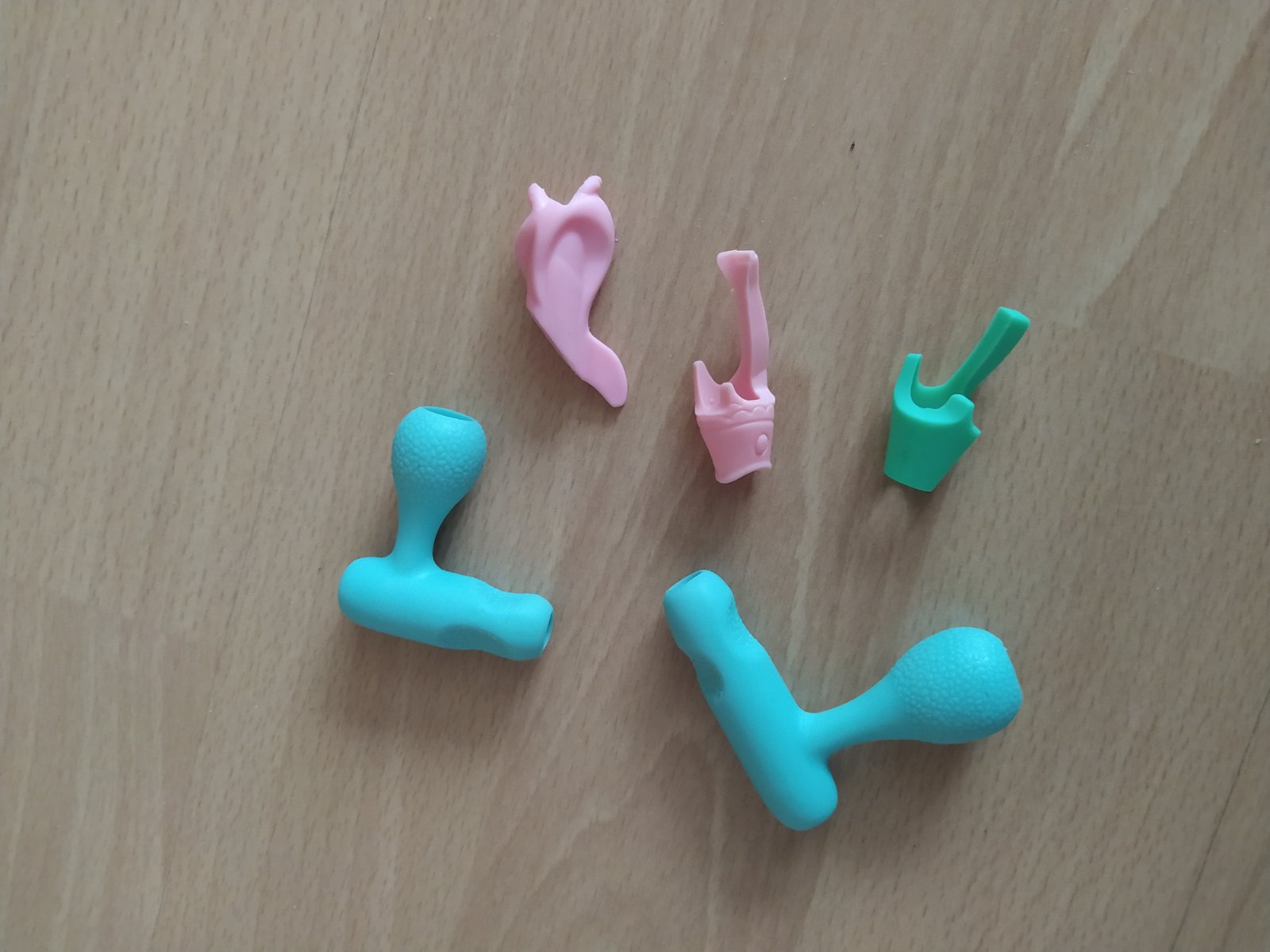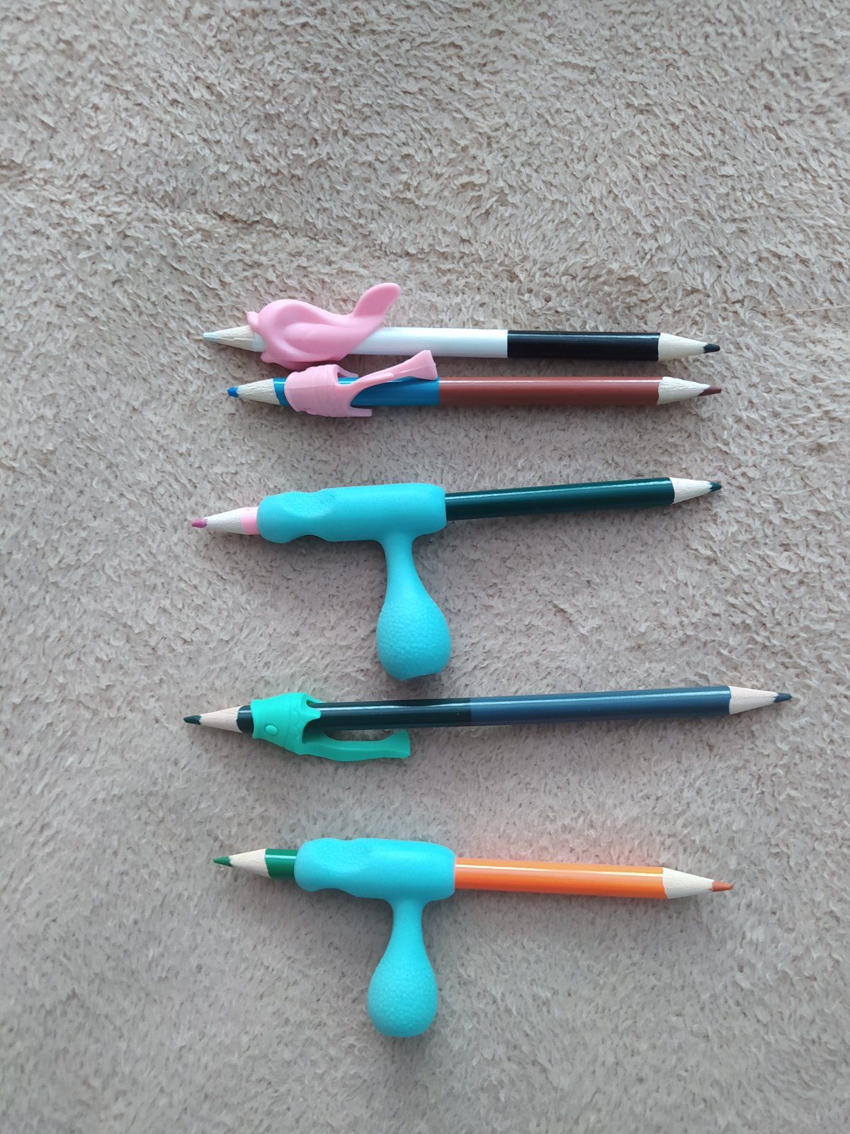 Pomůcky pro správné držení tužky, foto/30 kč, pastelky nejsou součástí.
