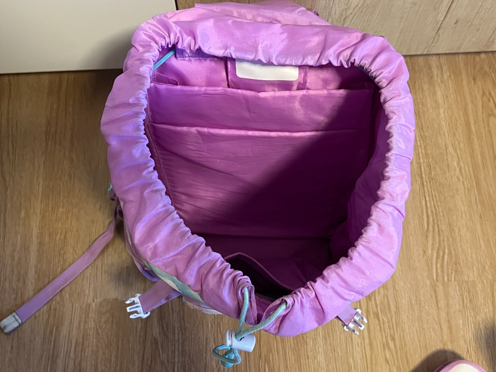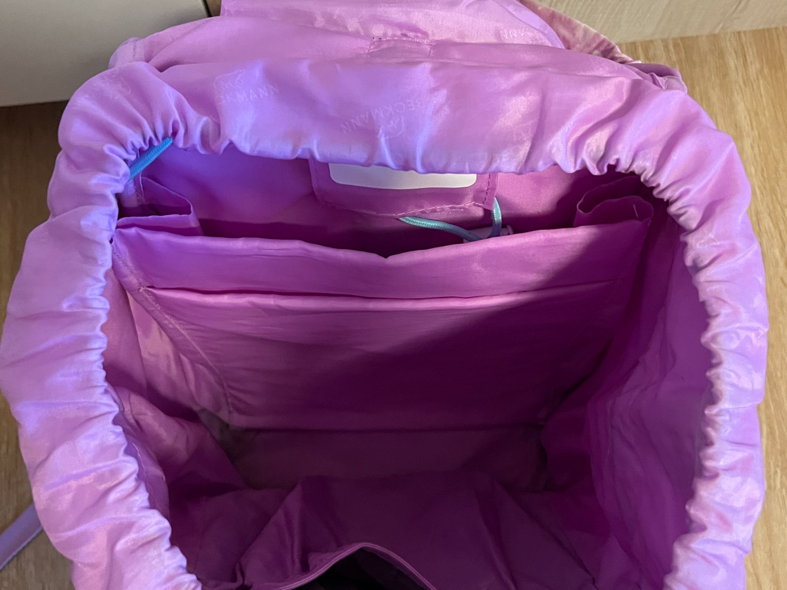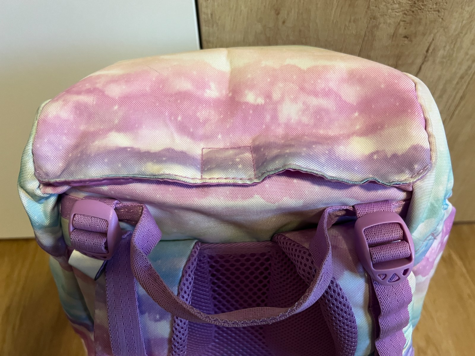 Batoh byl používaný od 1. do 3. třídy, stav dobrý – vykazuje známky nošení, lehké odření na přední kapsičce, čárka od tužky. 1 výměnný obrázek poškozen. Batoh ale určitě ještě dobře poslouží. Do světélka je třeba dát novou baterii.