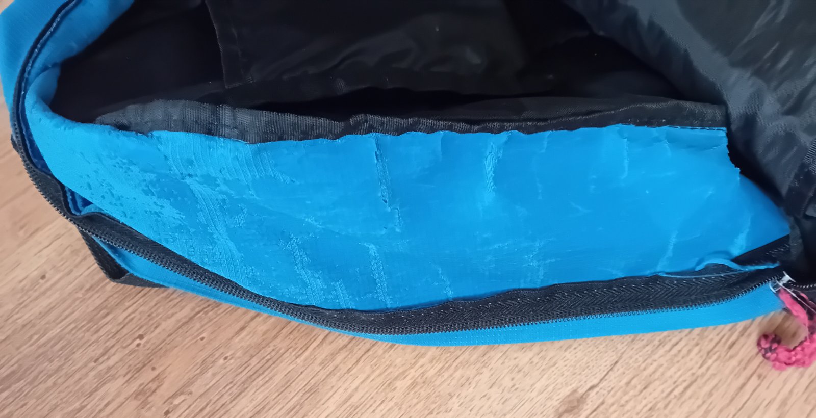 Uvnitř malá kapsička.Ve spodu úložný prostor.