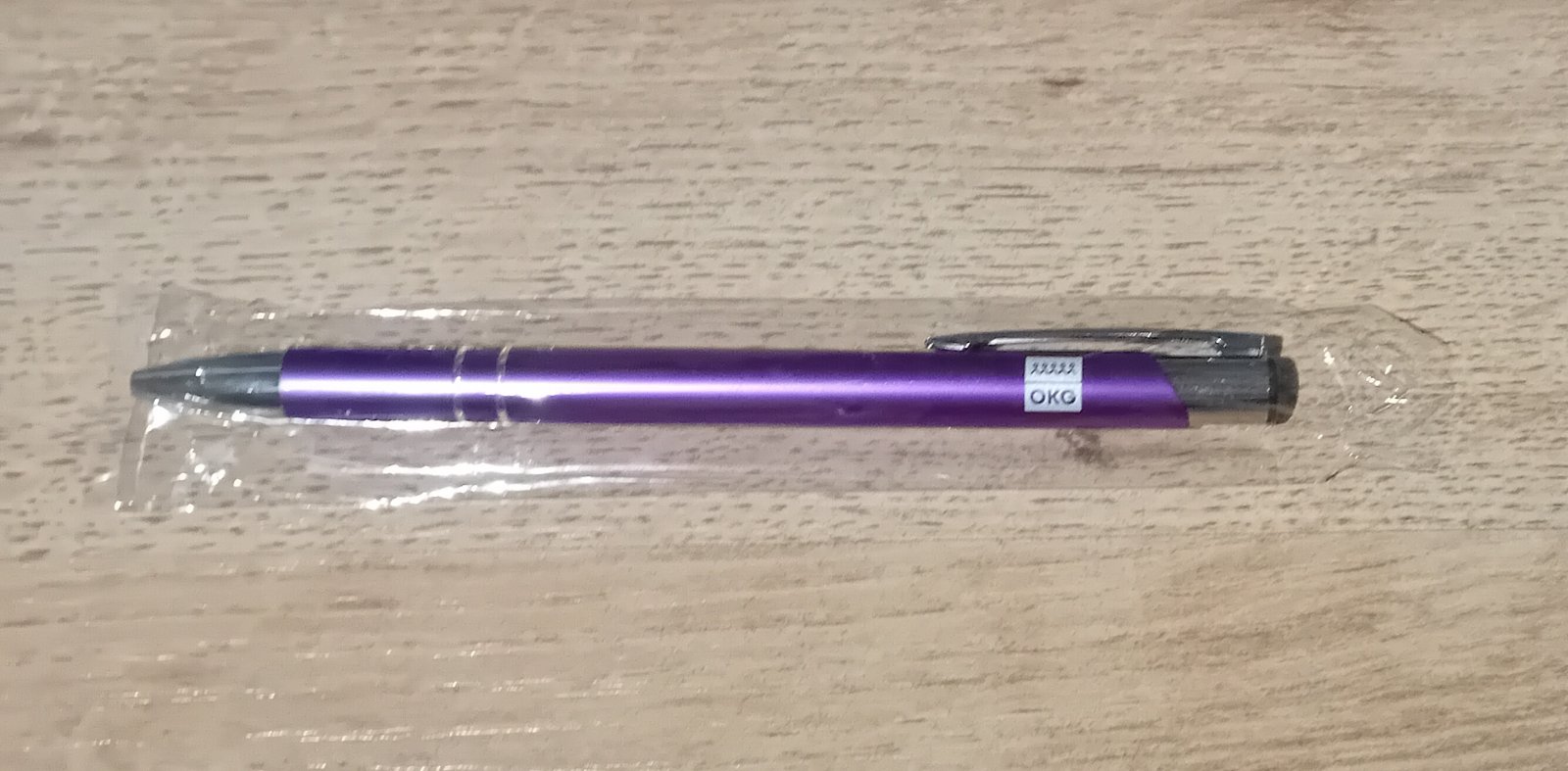 Reklamní propiska.Nová.Dva kusy žlutá a fialová.