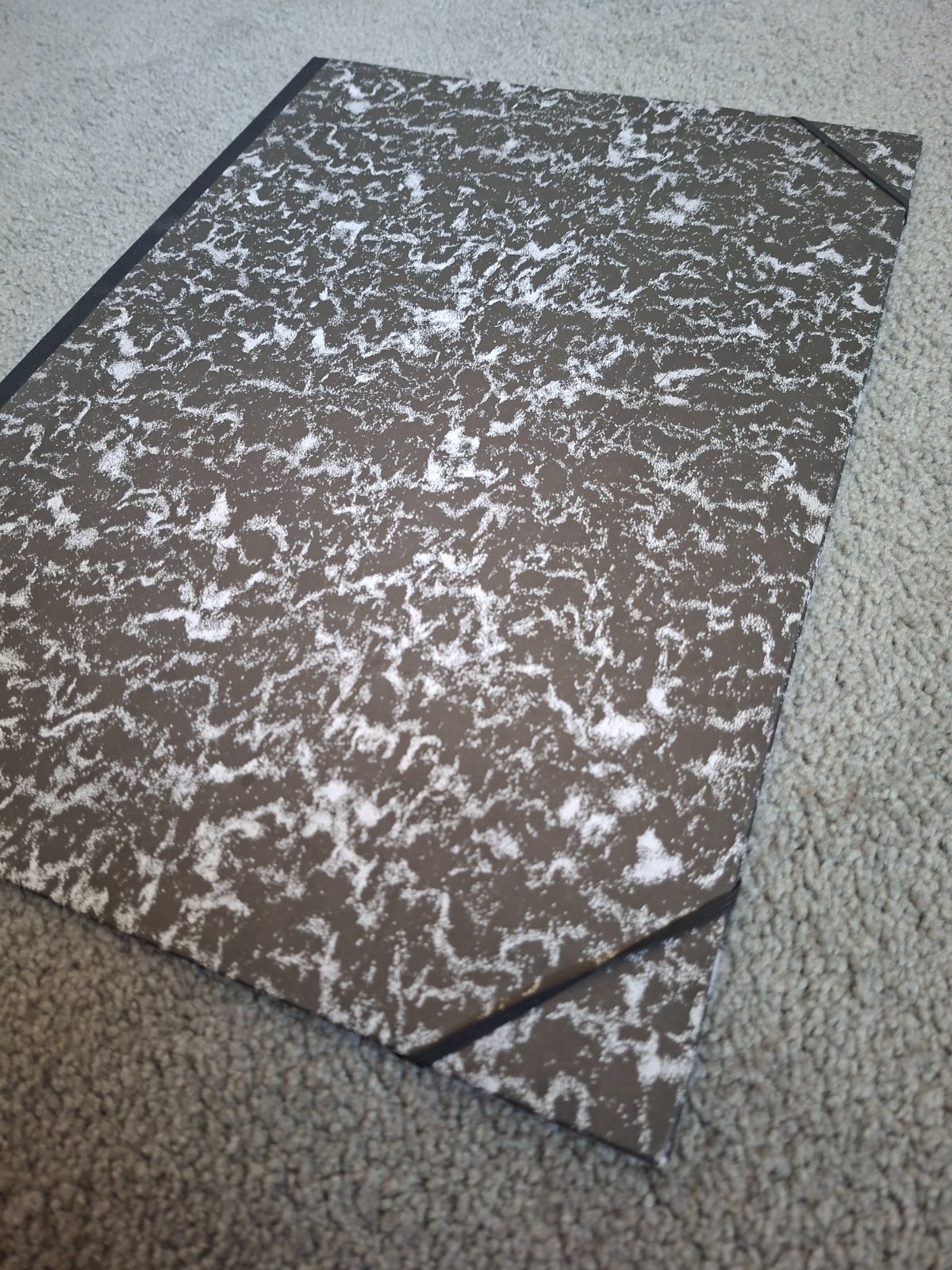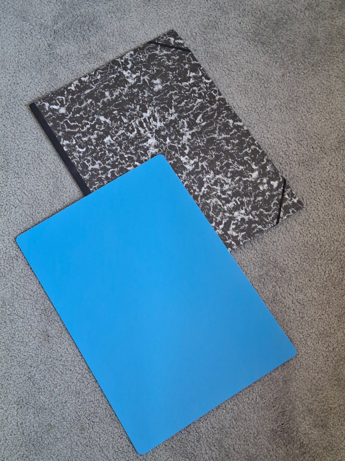Chvíli používáno ve škole, plastová podložka je čistá, jen nějaké odřeniny viditelné jen pod úhlem