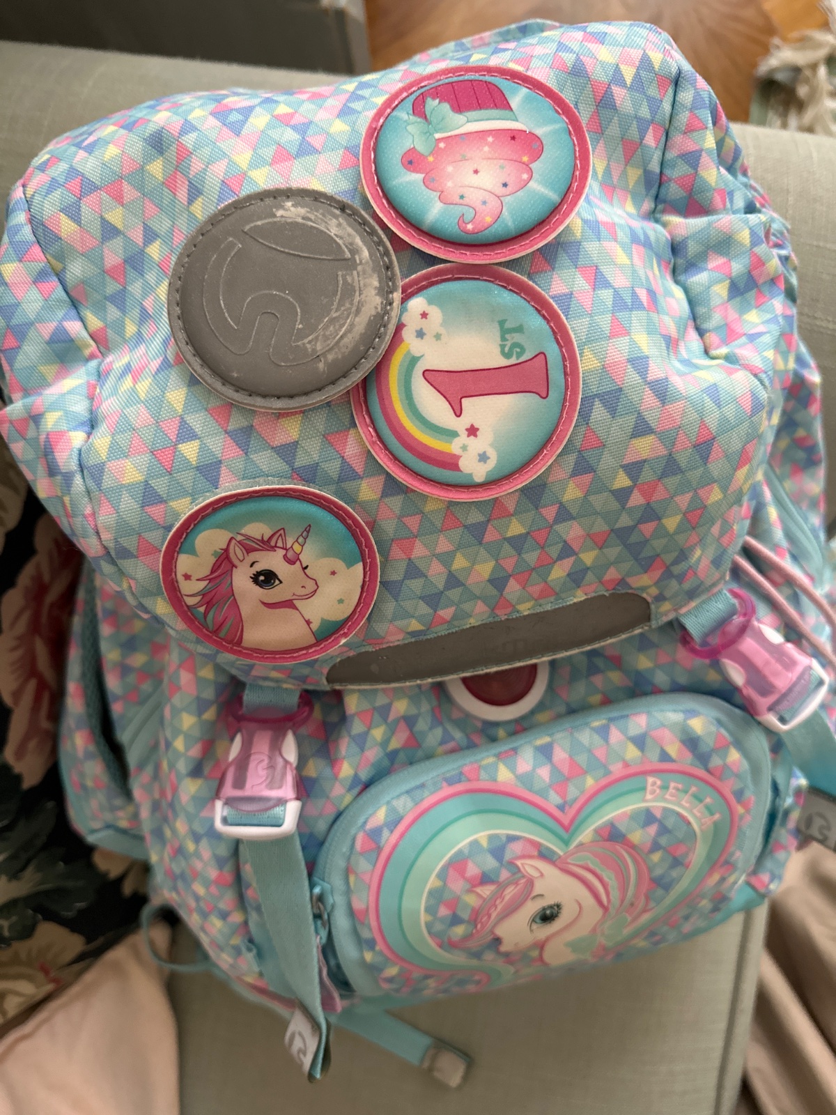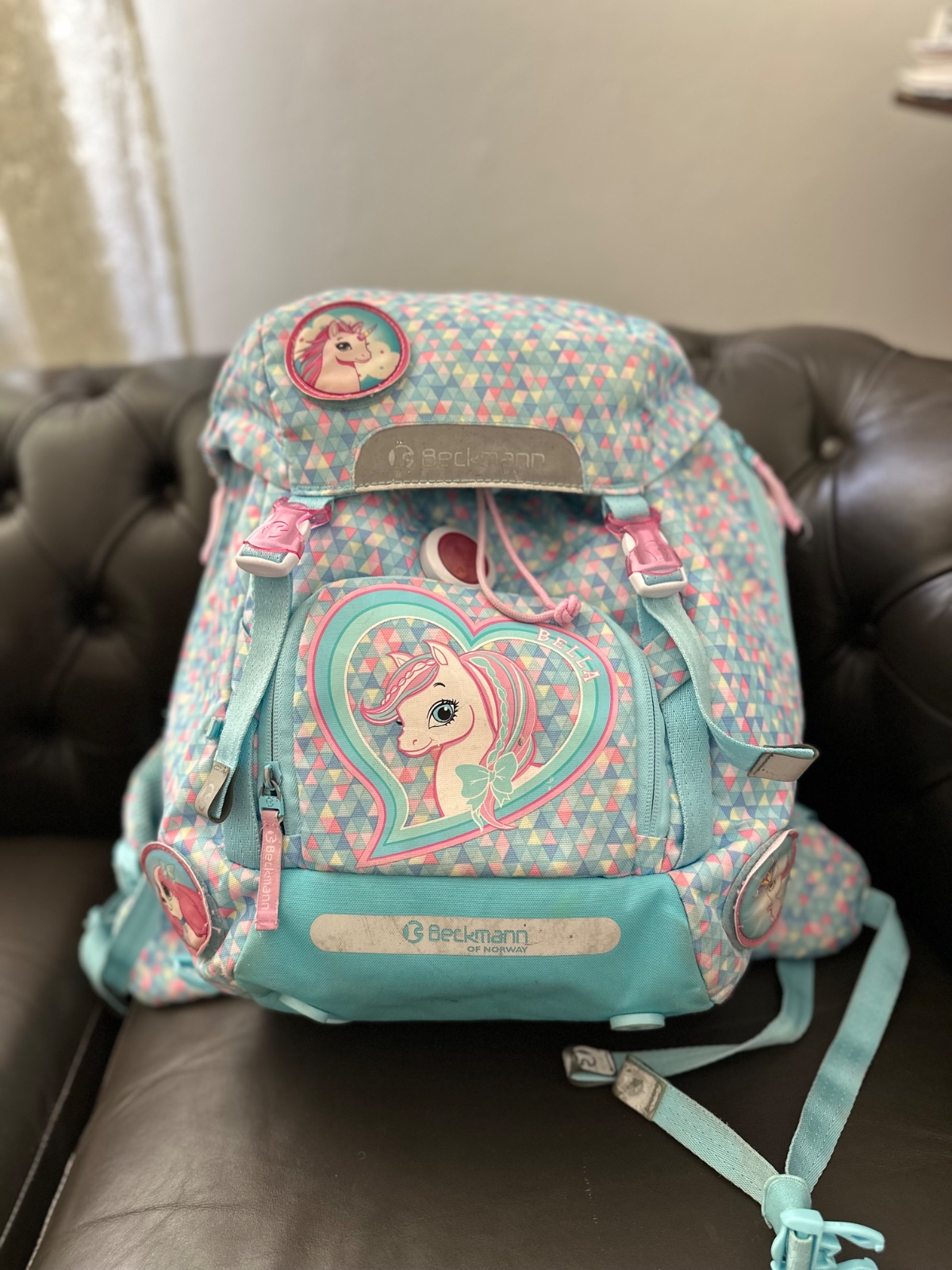 Nabízím školní aktovku zn. Beckmann, nese známky nošenil, ale jedná se spíše o estetiku, aktovka je funkční, nefunguje jediná praktická věc, a to je blikačka ve středu batohu u zapínání. Obsahuje výměné obrázky na suchý zip, které si dítě umísťuje dle libosti na třech k tomu určených místech. Dále je k aktovce původní pláštěnka, ale batoh sám je dost nepromokavý. Nabízím za symbolickou cenu, třeba ještě někomu poslouží. Osobní předání je možné na Praze 1, případně pod Vyšehradem.