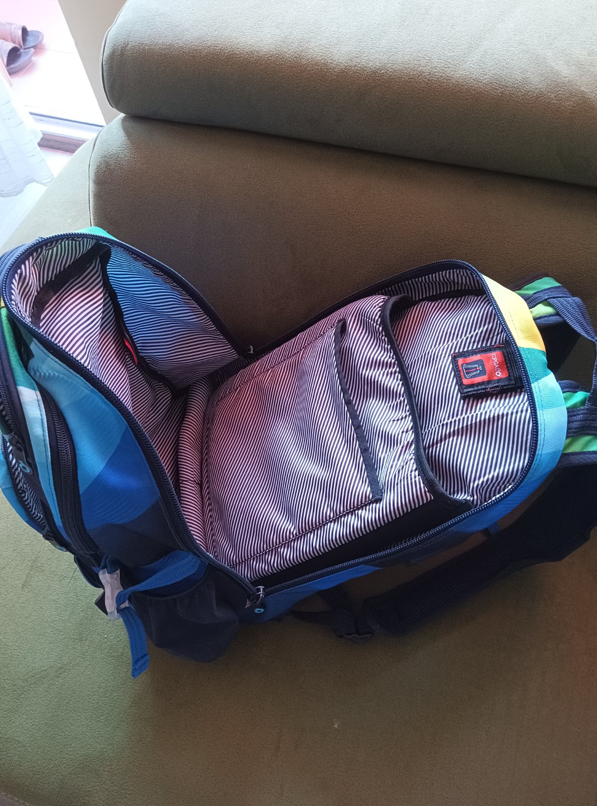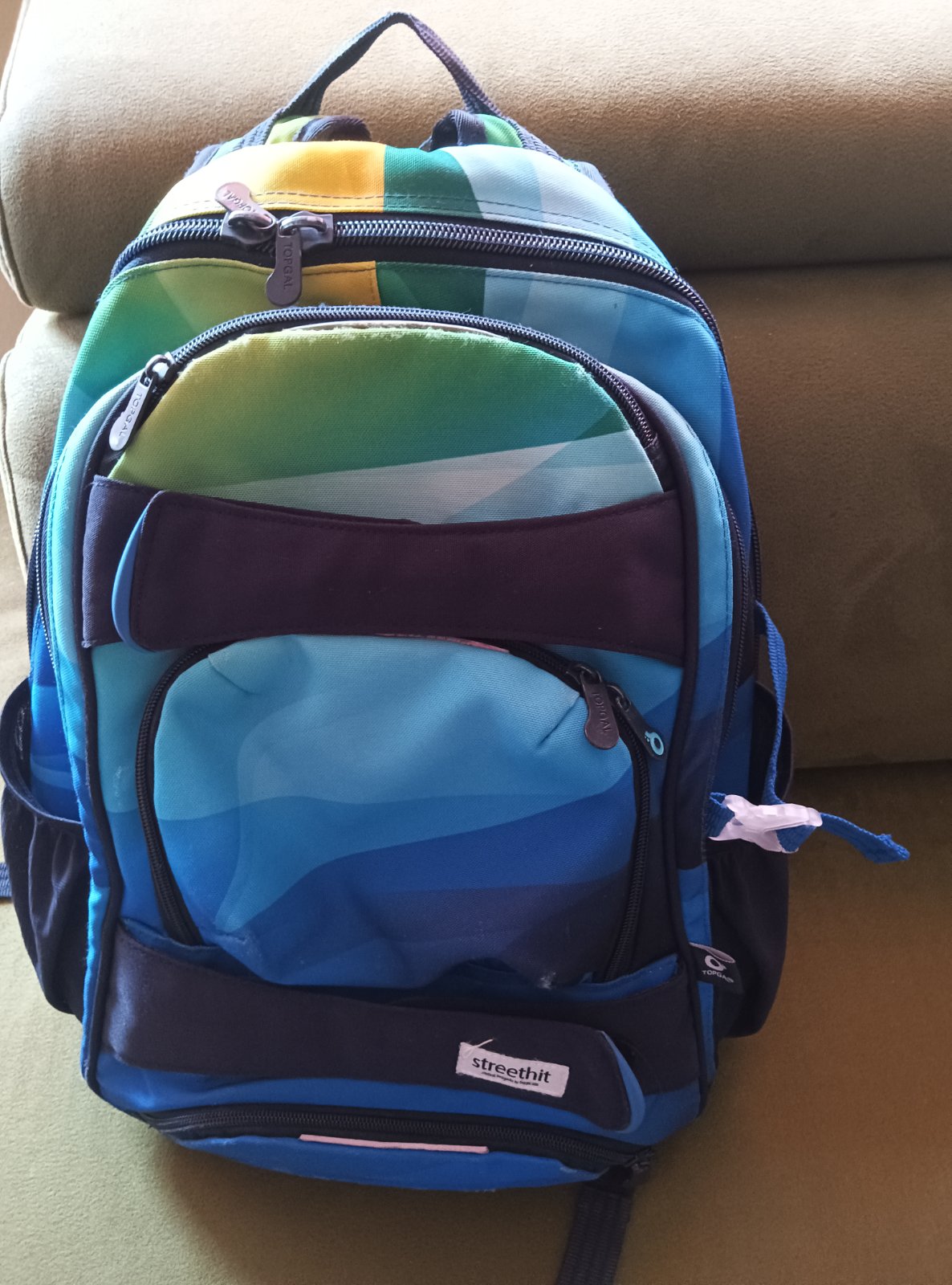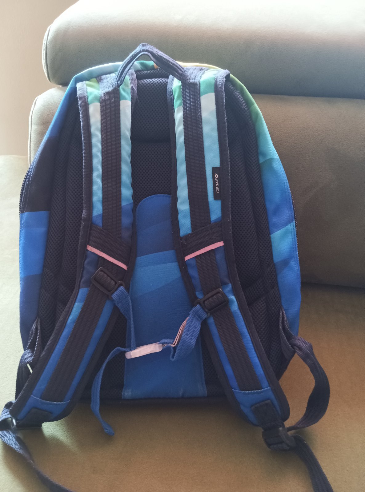 Prodám jednokomorový batoh s odlehčeným zádovým systém z měkké pěny.Batoh má reflexní prvky.Po bocích batohu jsou dvě kapsy na pití doplnění o kompresní popruhy.Diky ním se v kapsách udrží i 1,5 litrová lahev.Batoh má poutka pro bederní pás.Pevna lisovaná záda z měkké pěny, pevné dno, polstrovaná ramenní popruhy, měkká kapsa na notebook, zástěry proti dešti, reflexní popruhy.V předu na kapsičce je malinko odřený,viz foto.Na funkci to nemá vliv a určitě ještě nějaký rok poslouží.