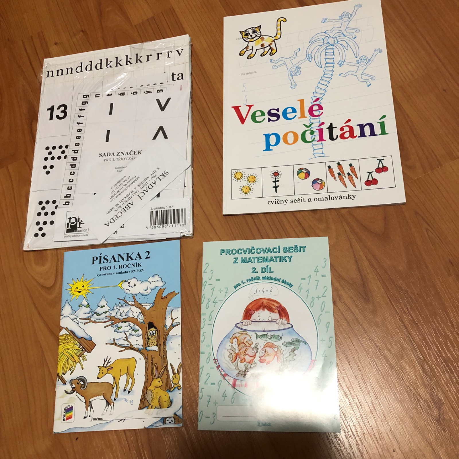 Zdarma přidám: nový pracovní sešit, papírové hodiny, nový deníček- zápisník, česko-anglické pexeso, starší číslo časopisu Medvídek Pú- nerozbalený, desky + čislice v hezkém stavu + nevyužité číslice a Abeceda, nevyužitý sešit omalovánky, 2x matematika na procvičení a písanka 1. třída vše také nové.