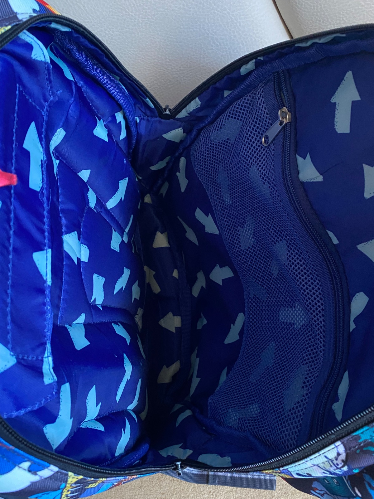Batoh má dvě objemné hlavní komory. V zadní kapse najdete ještě malou síťovou kapsu na zip. Hlavní vychytávkou širší přední komory je to, že je rozdělena polstrovanou přepážkou na dvě části. Tím pádem od sebe můžete pohodlně oddělit učebnice a sešity, nebo učení a svačinku.