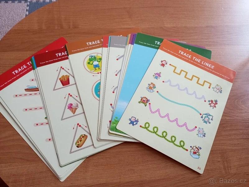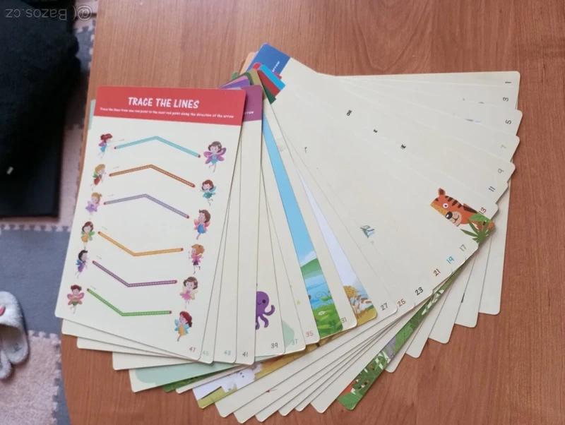 Sada oboustranných stíracích výukových listů pro děti.