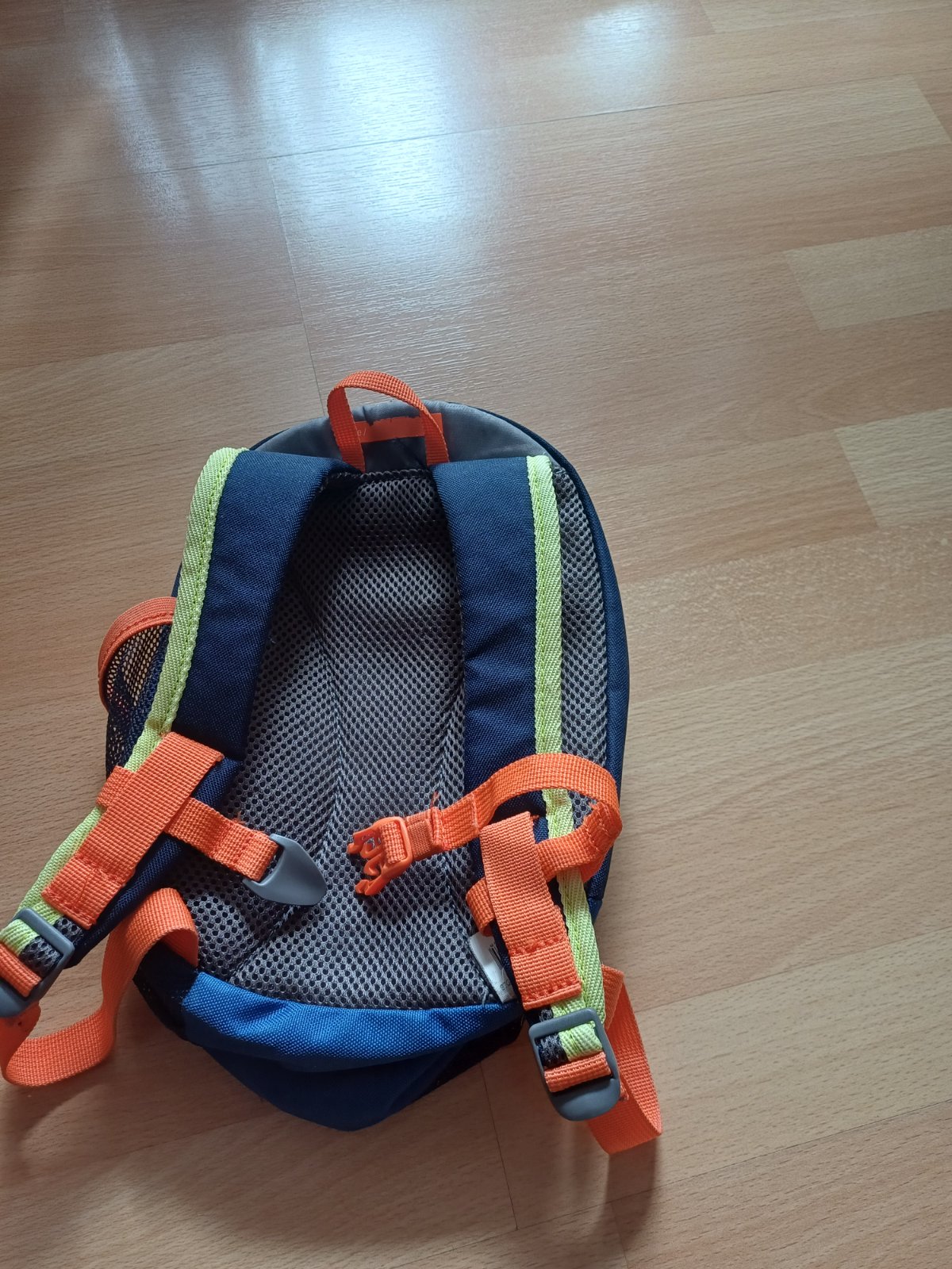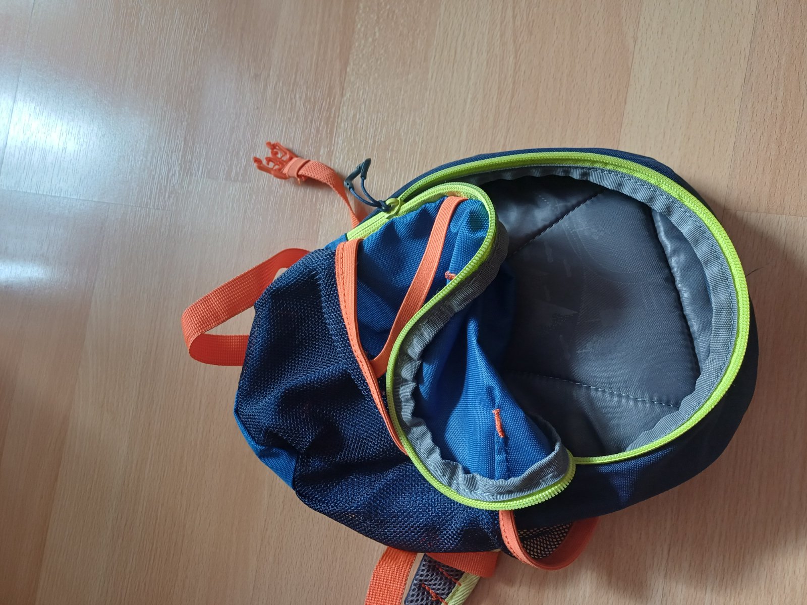 Malý batůžek Quechua z Decathlonu. Je 30 cm vysoký a má venkovní kapsičku na pití a druhou venkovní kapsičku na drobnosti. Uvnitř je jeden nečleněný prostor.
