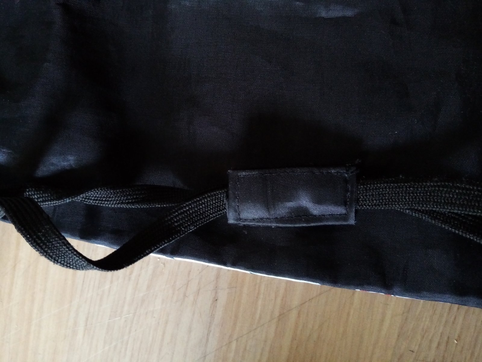 Batužek na přezuvky,sportovní potřeby. Zachovalý,hezký,pevný a kvalitní materiál. Na zadní straně dole lehce jakoby škrábance,viz foto. Na jedné provlékací dírce dole u šnurky uvolnený nerez cvoček. Ničemu nevadí.