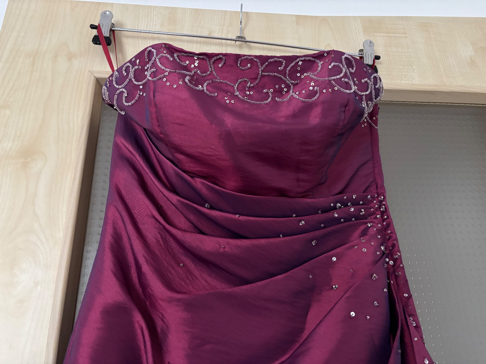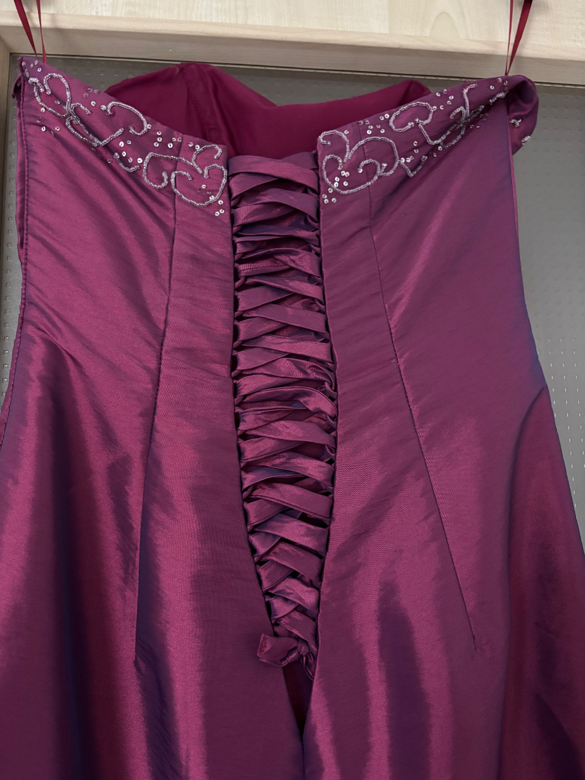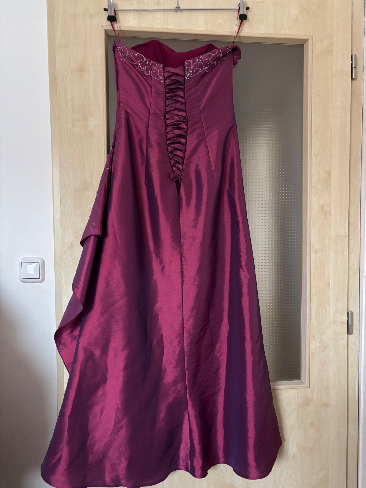TOP STAV: koupené v salonu a upravené na mou velikost S . V zadu na šněrování a zip na boku , vyšívané Micro korálky . Nádherné , hází při světle odlesk , se spodničkou . Bokérko přes ramena , poprsí 75B.