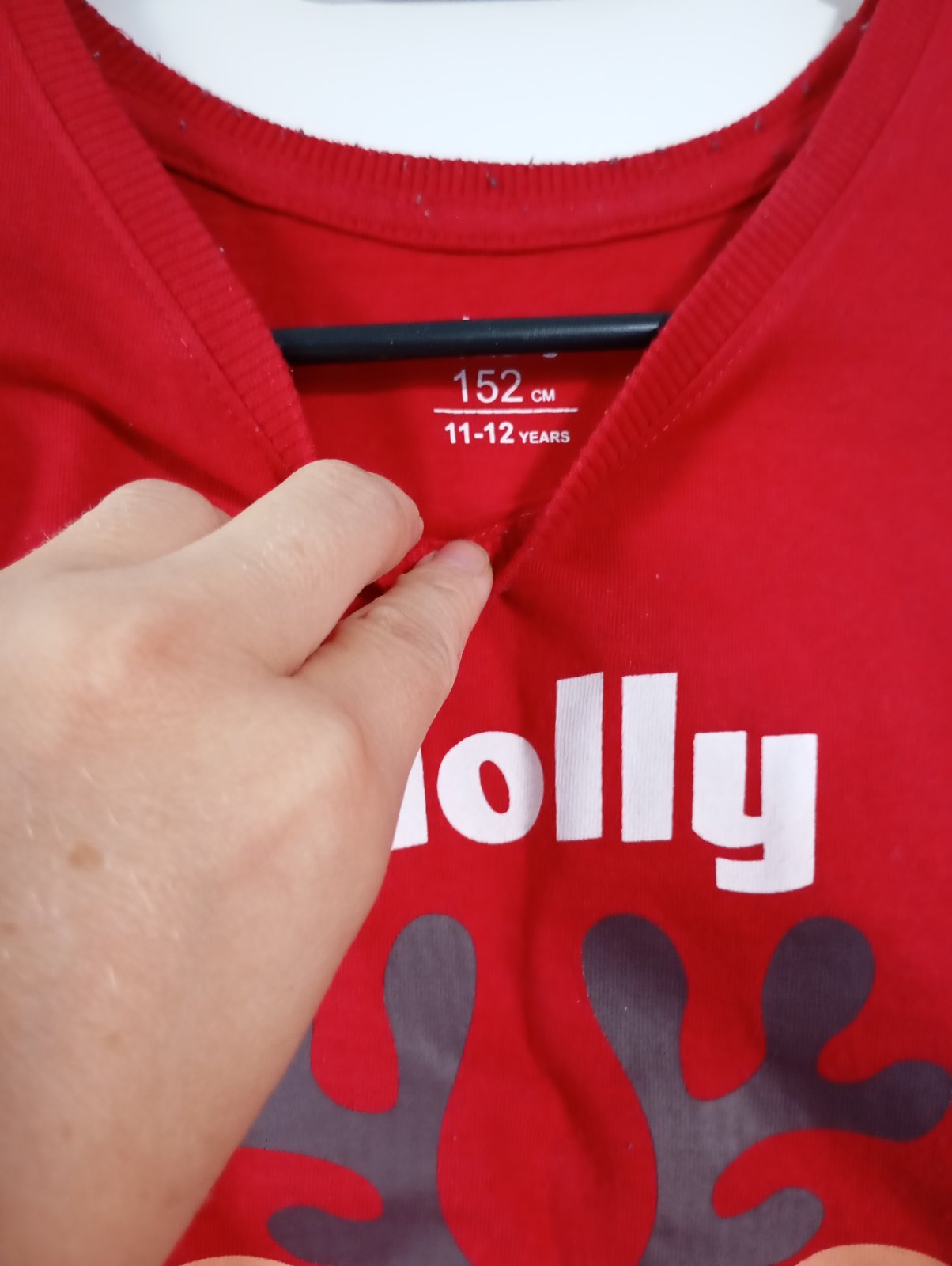 Nošené vánoční pyžamko, kalhoty již mají žmolky od praní.