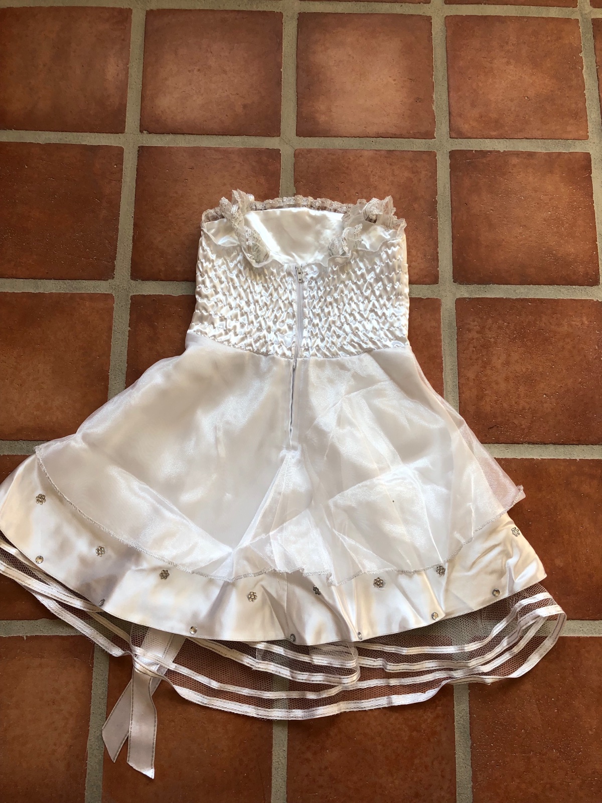 Krásné šaty pro družičku, krásný stav - viz fotky (teď jsem při detalním zkoumání našla několik zatržených nitek v části, kde je satén, ale na první pohled to není moc vidět), oblečené 1x, praní 1x...