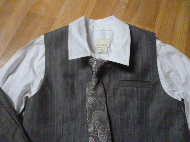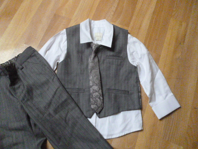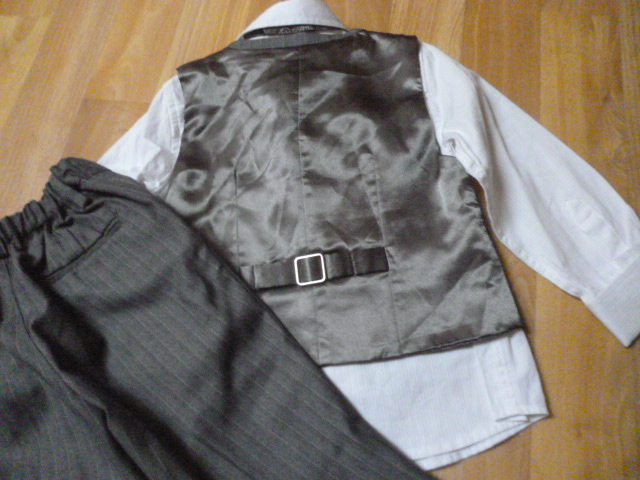 je nenošený, nádherný, super materiál, délka kalhot je 52 cm, pas od 2x22 cm-regulace, košile je dlouhá 40 cm, vesta je dlouhá 33 cm vpředu, rukáv od krku je 39 cm, průramky 2x28 cm, psaná vel. 18-24 m,ale asi i déle zn.Monsoon