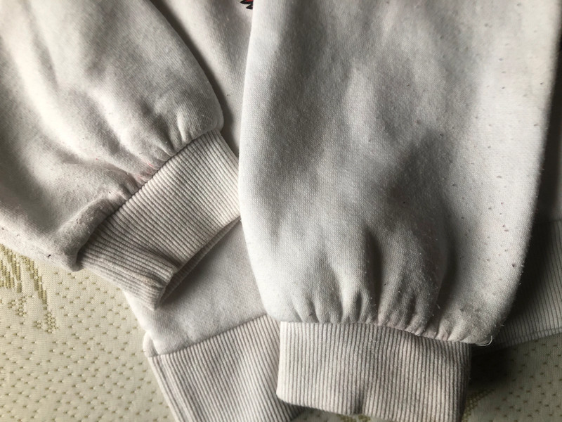 bavlna, polyester, nošená byla méně, má drobné žmolky, u lemů na rukávech je trochu zabarvená, velikost 8 - 9 let, rukáv od krku 55 cm.