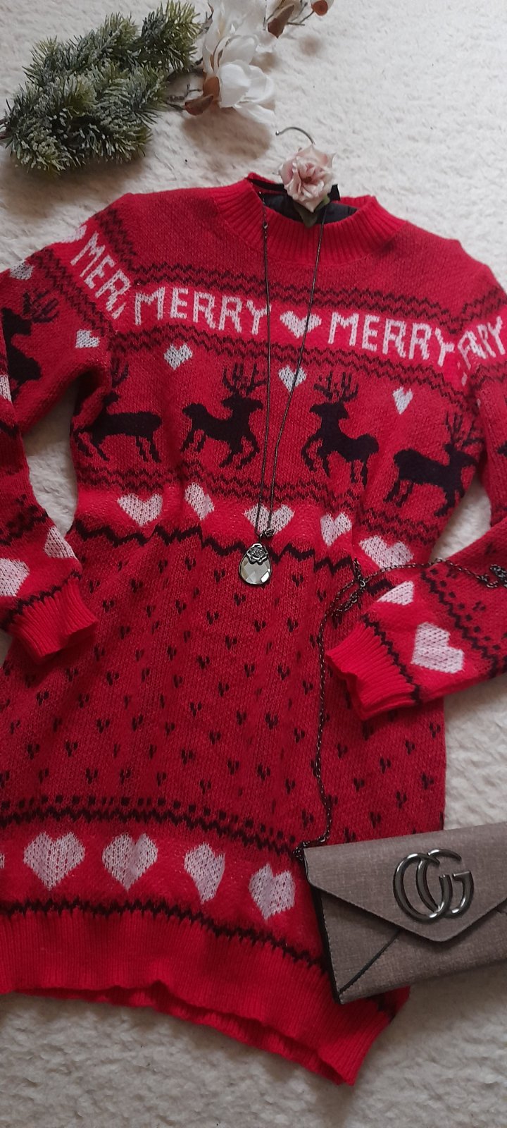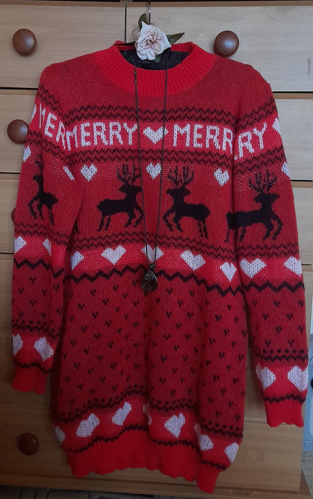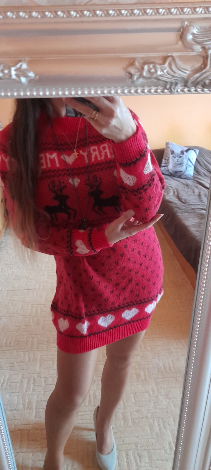 Dámské červené úpletové krátké šaty / dlouhý svetr se sobíky