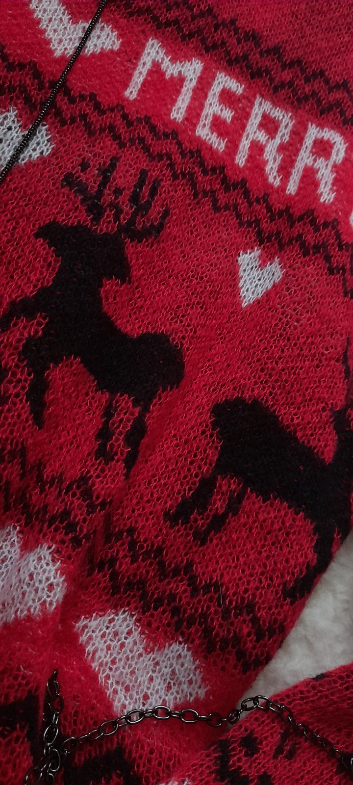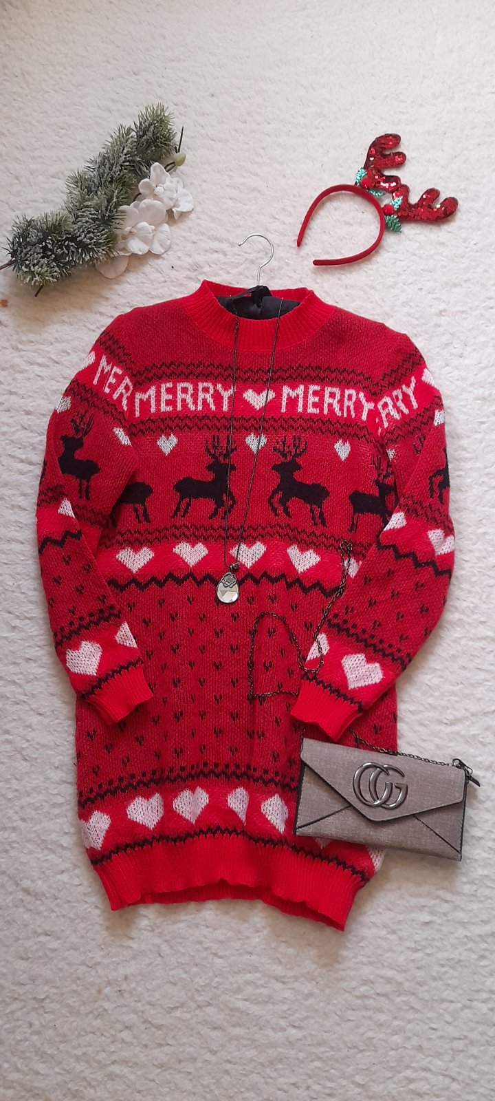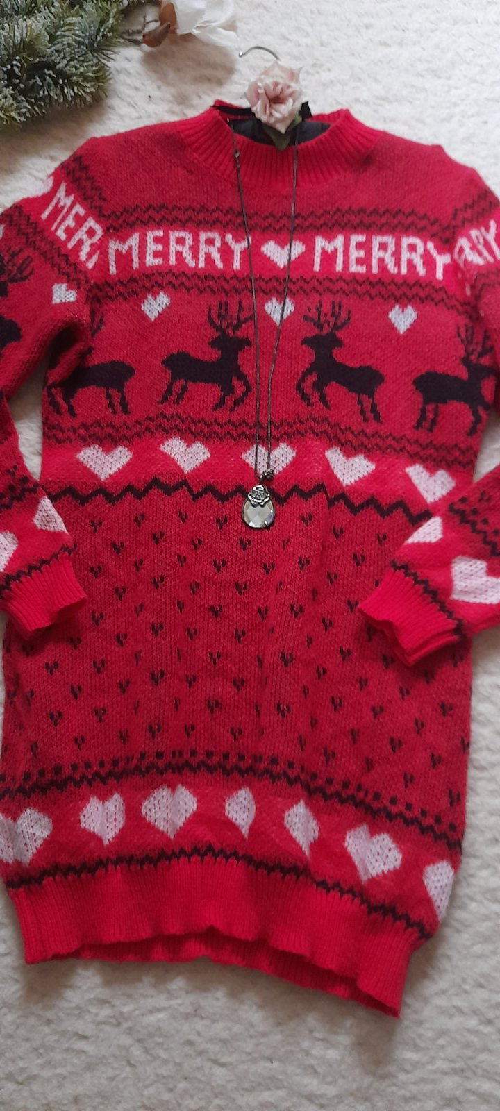Dámské červené úpletové krátké šaty / dlouhý svetr se sobíky