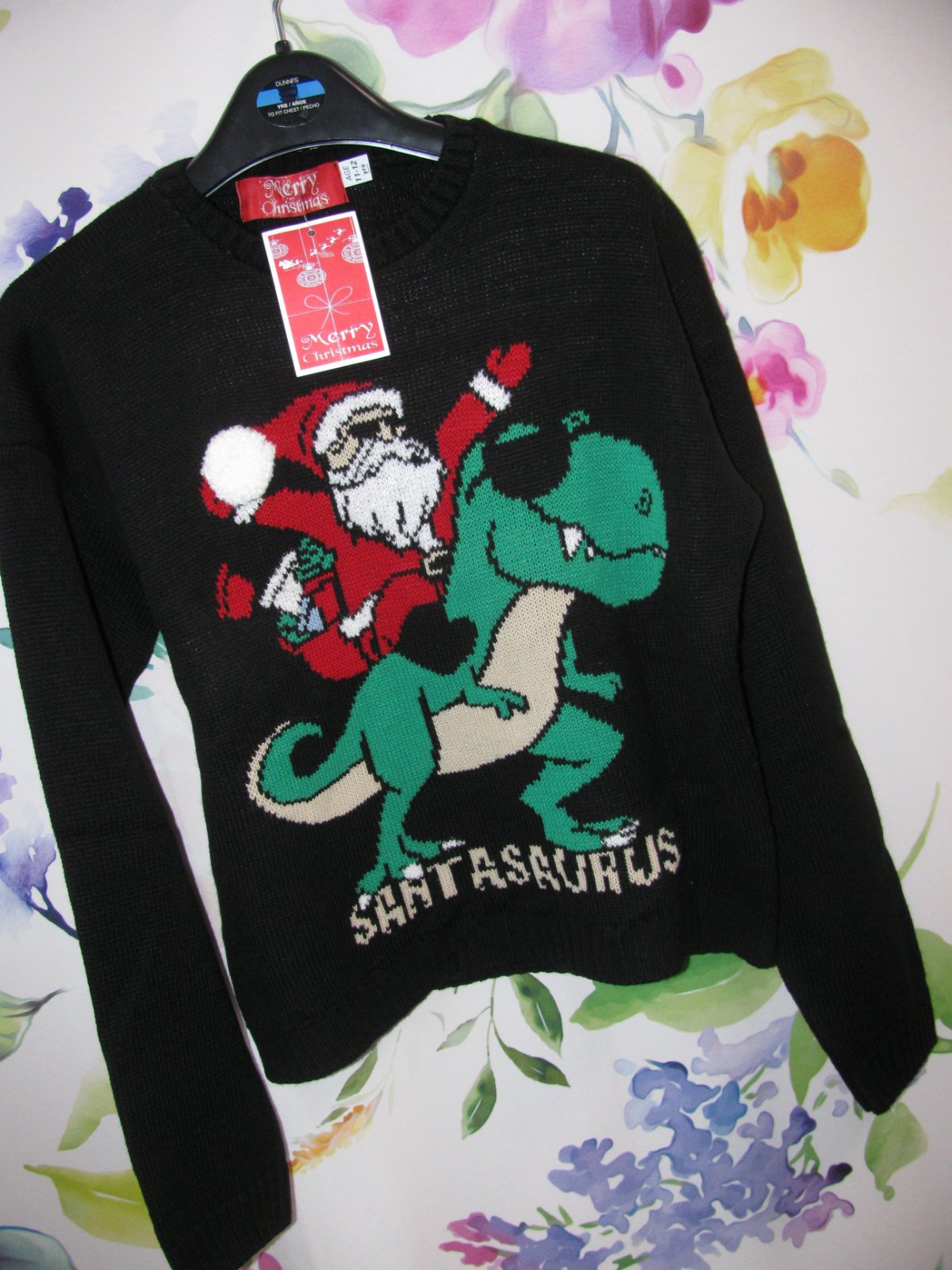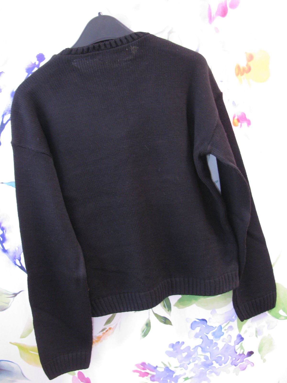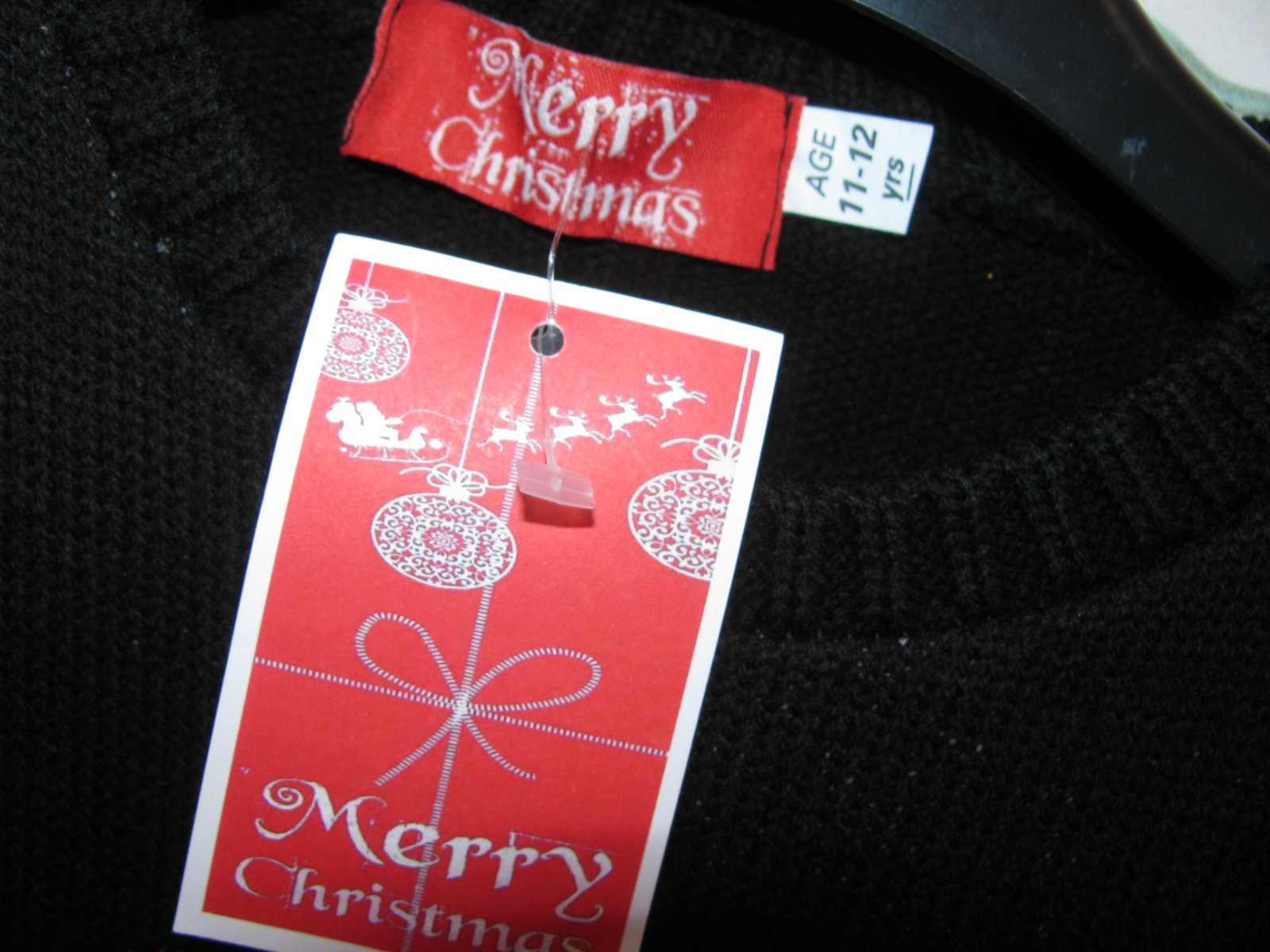 Skvělý Vánoční, černý pružný, akrylový svetr, s obrázkem na hrudi. Unisex.