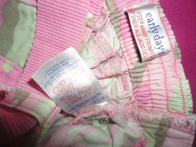 Bezvadné, slušivé, bavlněné gaťky, pas zadní část guma, páseček je v ceně, zdobné kamínky na kapsách, poutkách a uprostřed druku v pase a dole na nohavicích, poklopec je falešný, otvírá se jen prostor pasovky, d. 28, od rozkroku dolů 15,5cm, pas 20,5 - 22,5cm