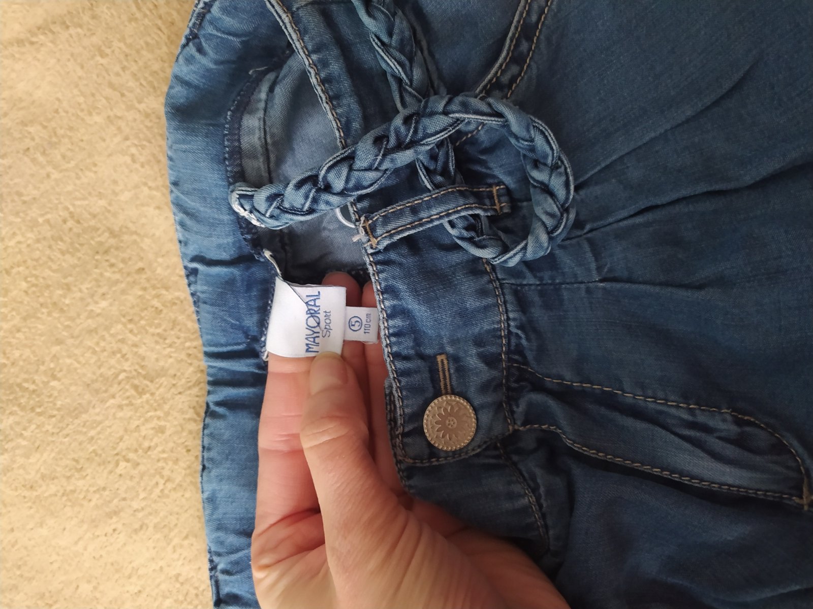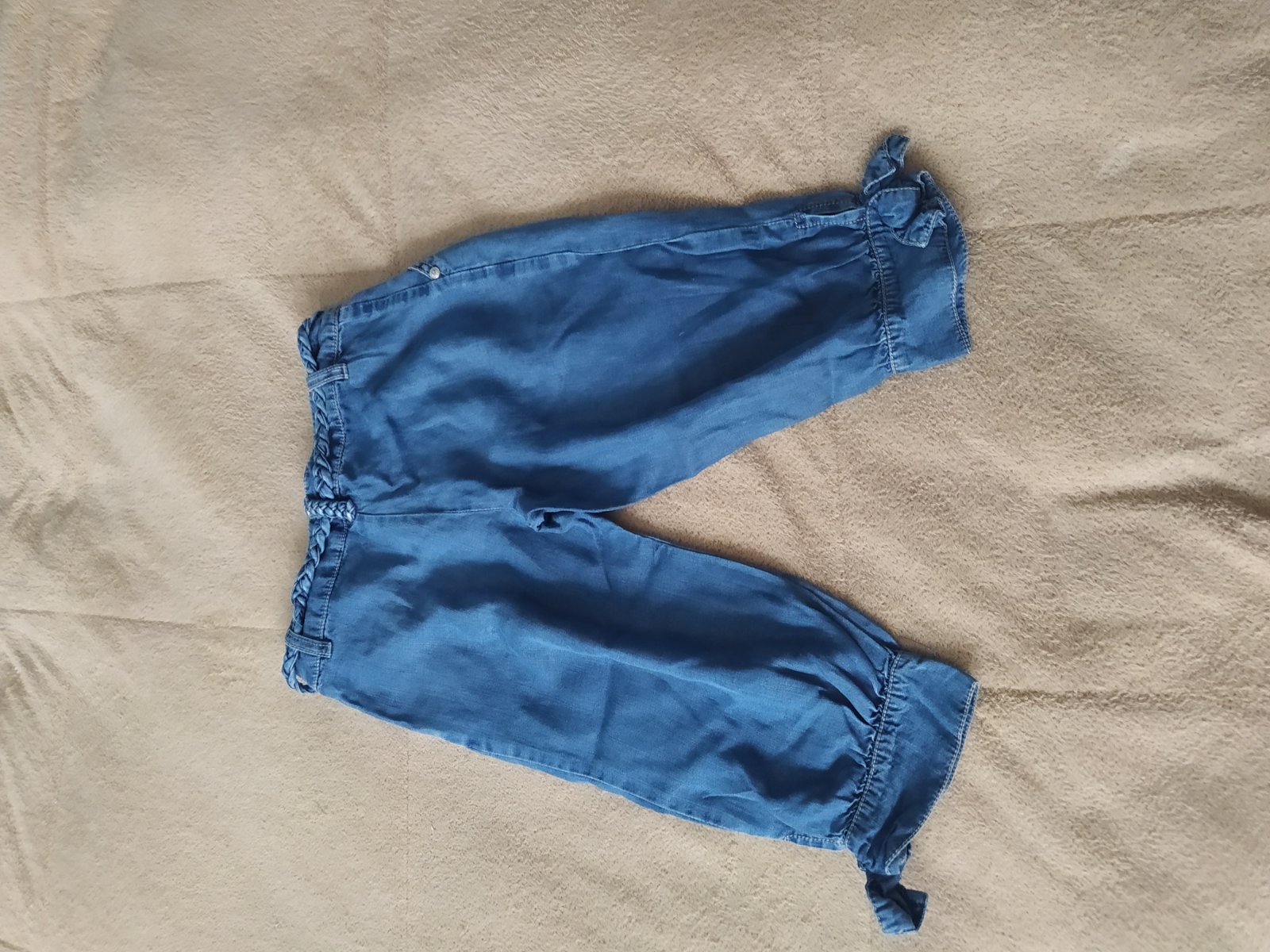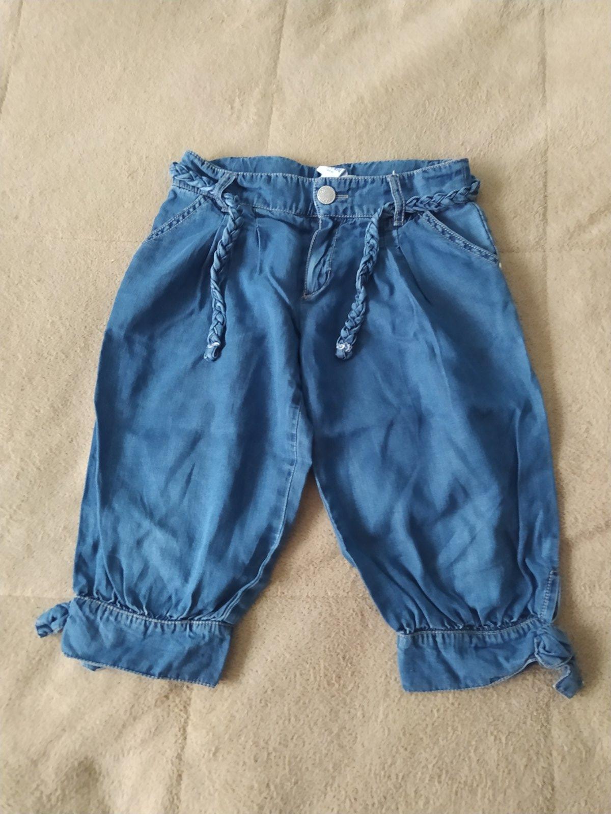 Balněné 3/4 teční kalhoty,vzhled rifloviny. Vel 110/116. CD 42cm,pas do gumy 2x25cm,vnitřní nohavice 23cm.