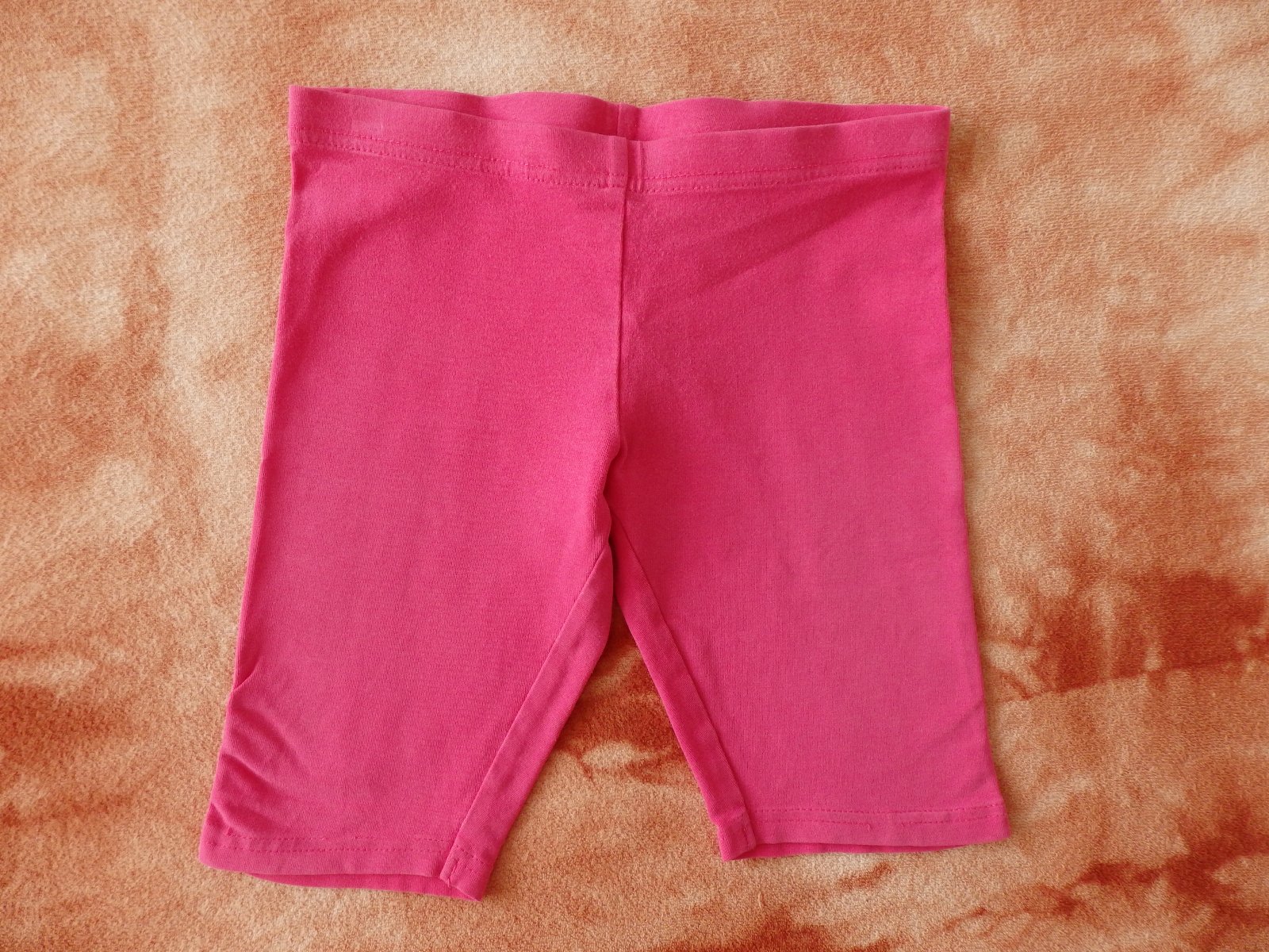 Růžové kraťasy, elastické, na zadku zašitá dírka (viz foto). Jinak dobrý stav. Na donošení.