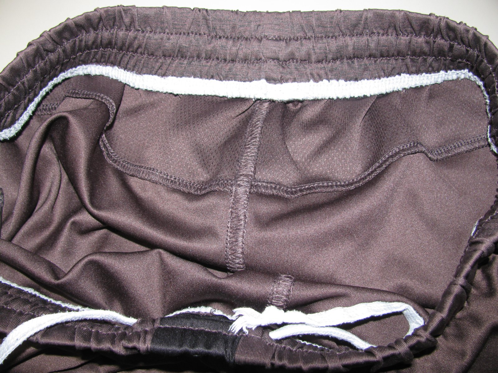 Hnědé elastické lehké šortky, v pase guma a šňůrka, vyšité logo, znak, 100% polyester. Odstraněna vnitřní síťová vložka. Nemá to vliv na nošení, jen upozorňuji pro pořádek. Jinak krásný stav bez vad. Štítky ustřiženy.
