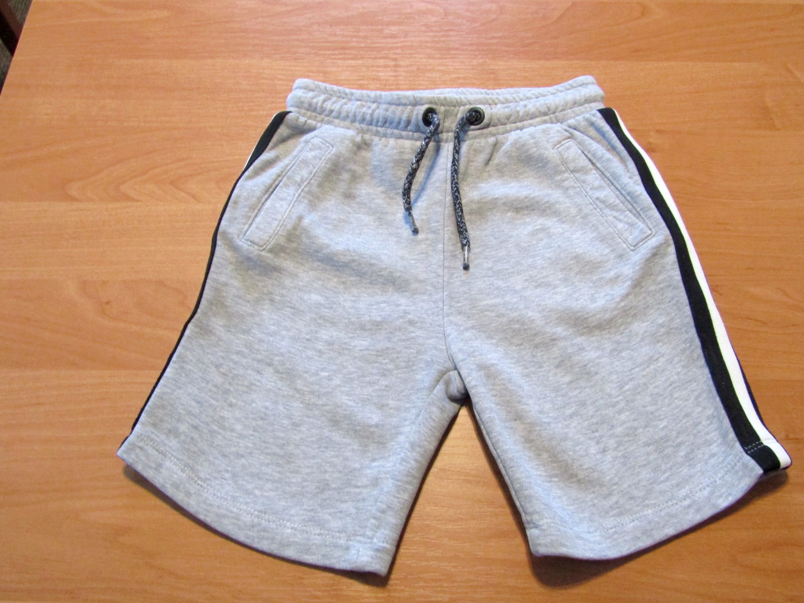 Dětské bavlněné kraťasy šedé zboku bílý pruh s obrázky 122 X-Mail uvnitř chloupek. V pase funkční šňůrka. Krásný stav, námi kupované nové.