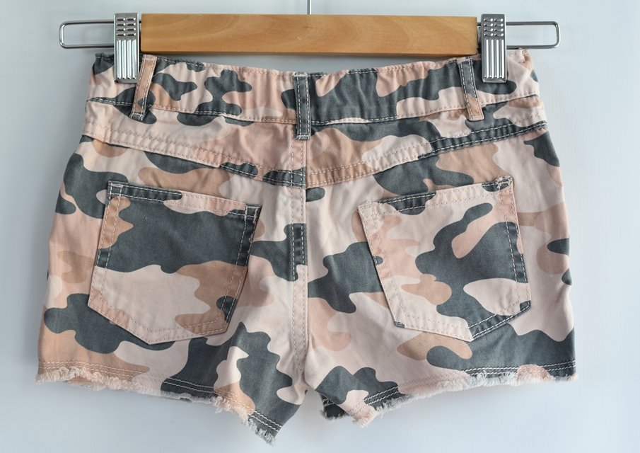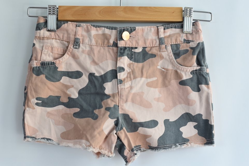Růžovo šedé krátké kraťasy. Mat. není pružný, tenčí. V pase regulace.