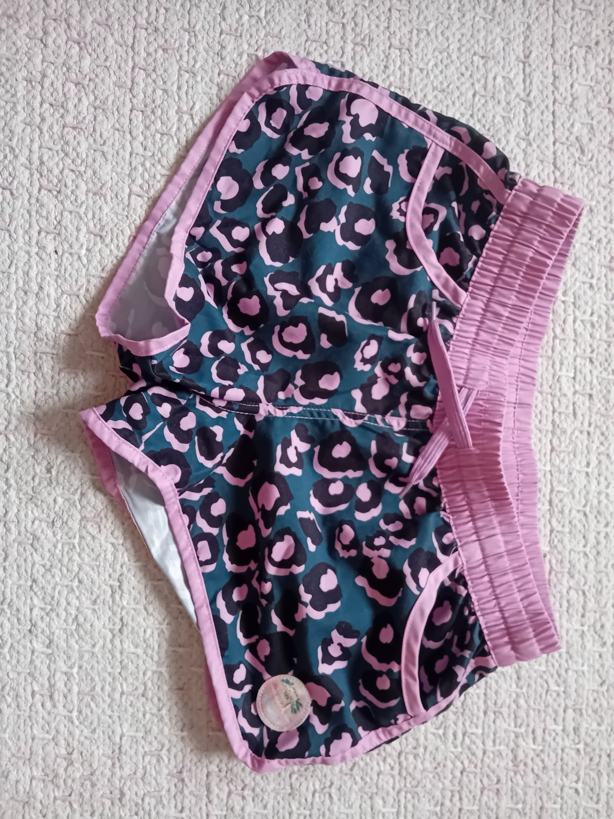 Minimálně nošené kraťásky, jako nové, lze použít i do vody, barva - světle růžová + lahvově zelená + černá.