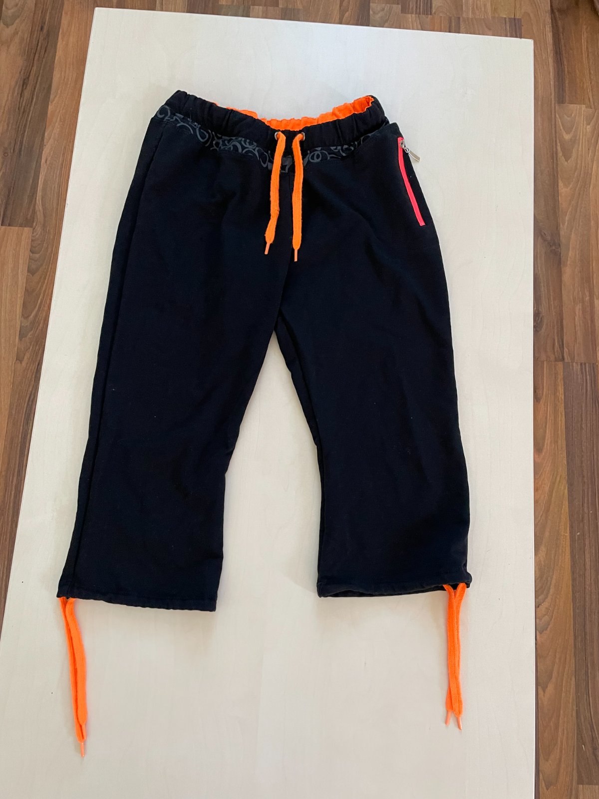 hol. nabízm k prtodeji tyto kraťasy, vel M, ale dcera nosila i při S volně, měřte, NHM. Černé s neon tkanicemi. Materiál podobný jako u tenkých tepláků, 95% bavlna, 5% lycra. Nošené, baz vad jen úpletové tkanice chloupek od praní a třením maličko uvolněný vzor - je to v detailu a nan nošení neruší, a vnitřní oranžová v pase je místy žmolík - je to uvnitř. Černá látka nesperaná a bez vad, nebyly nošené moc. Nošené, bez avd, krásné