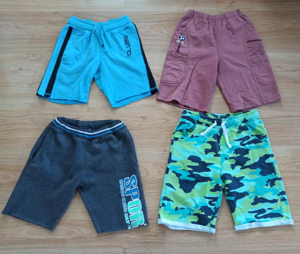 Prodám šortky s možností nošení od vel.122-134,pas 2x29-37cm,délka 37-43cm,nošené hodně,levé ve spodní řadě ustřiženy z tepláků,cena za všechny je 100kč.