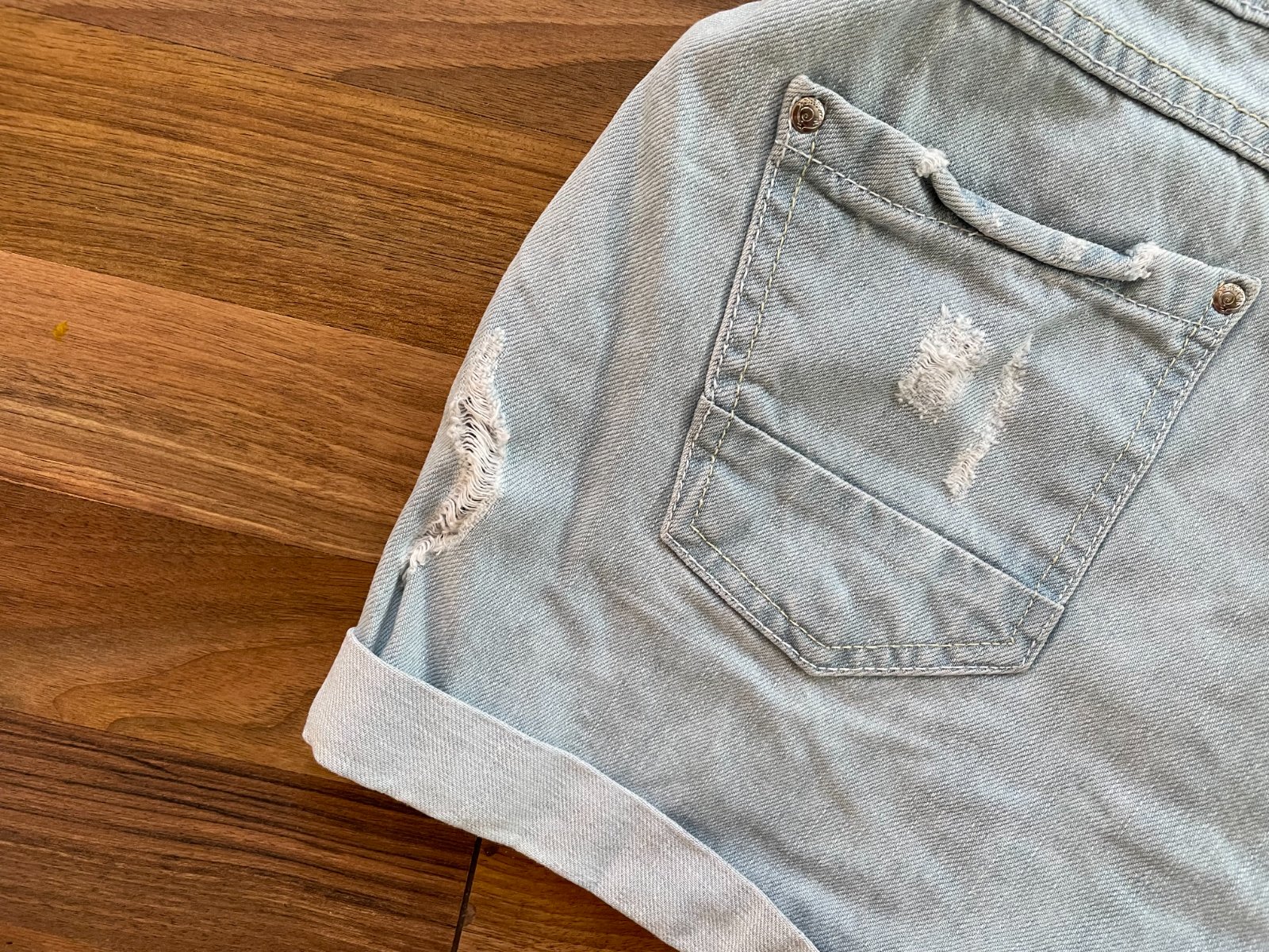 let. nabízíém k prodeji ytto světle modré šortky s laclem, vel S, Chillin. Materiál 100% bavlna. Šisování a díry a dření viz fota. Nošené, bez avd, krásné