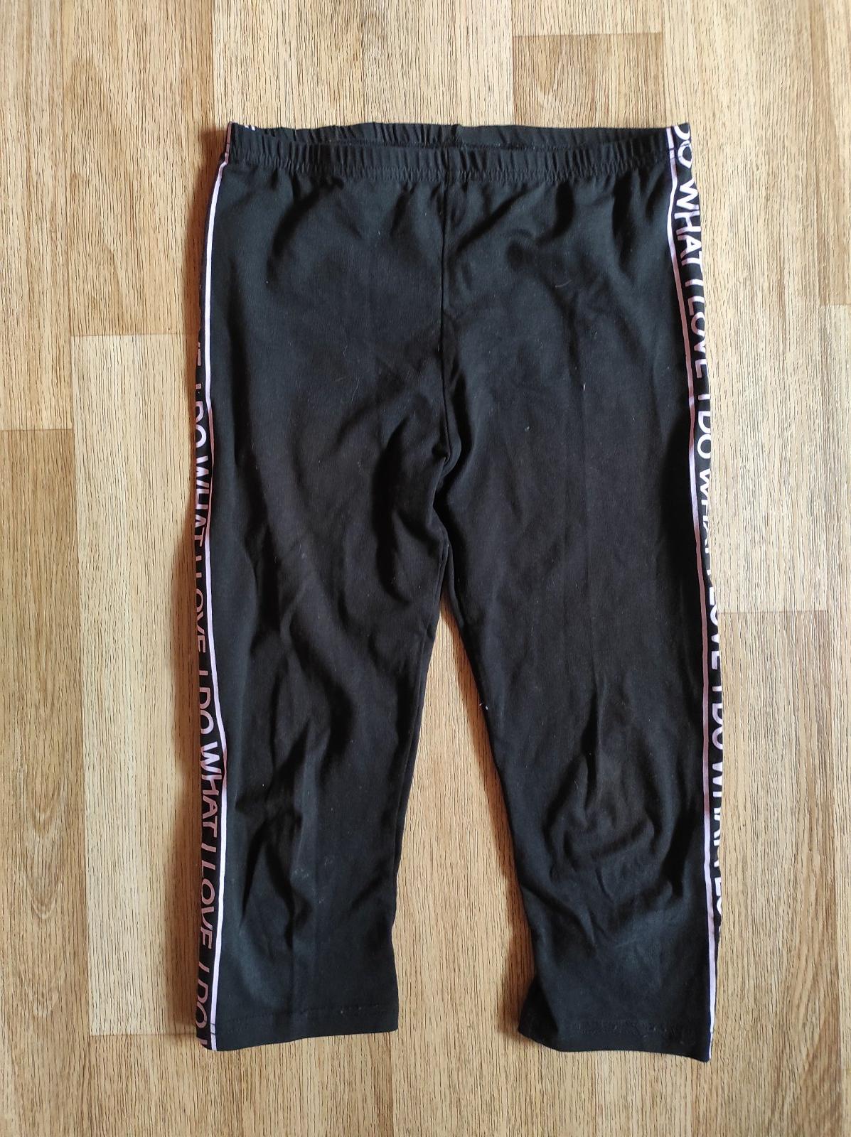 Pěkné 3/4 tepláky černé barvy s růžovými pruhy a nápisem. V pase široká, pružná guma se stahováním tkanicí. Lehce se přizpůsobí postavě vašeho dítěte. Po stranách i v zadní části kapsy. Tepláky obl...